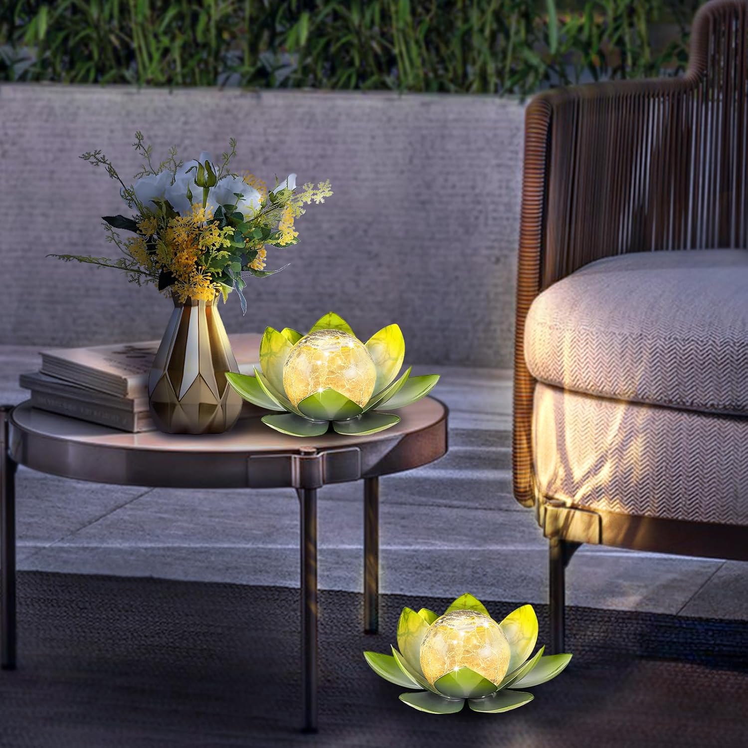Garden Solar Light Outdoor(2Pack),Crackle Globe Glass Lotus Decoration, Waterproof Metal LED Flower Lights for Patio,Lawn,Walkway,Tabletop,Ground