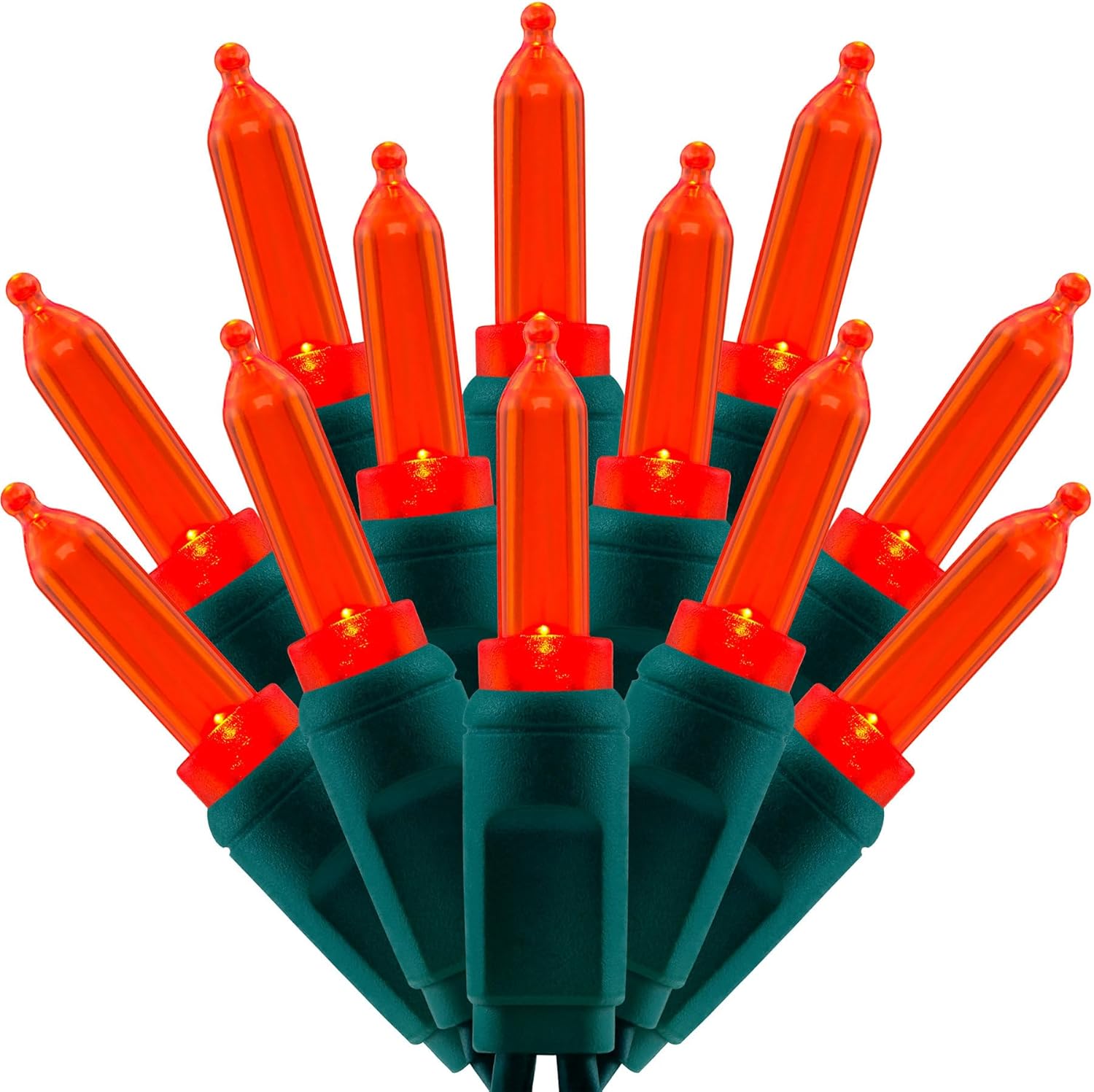 100 Red One-Piece LED Christmas Lights, 33 ft Green Cord High Waterproof UL Certified T5 Outdoor String Lights (Red)