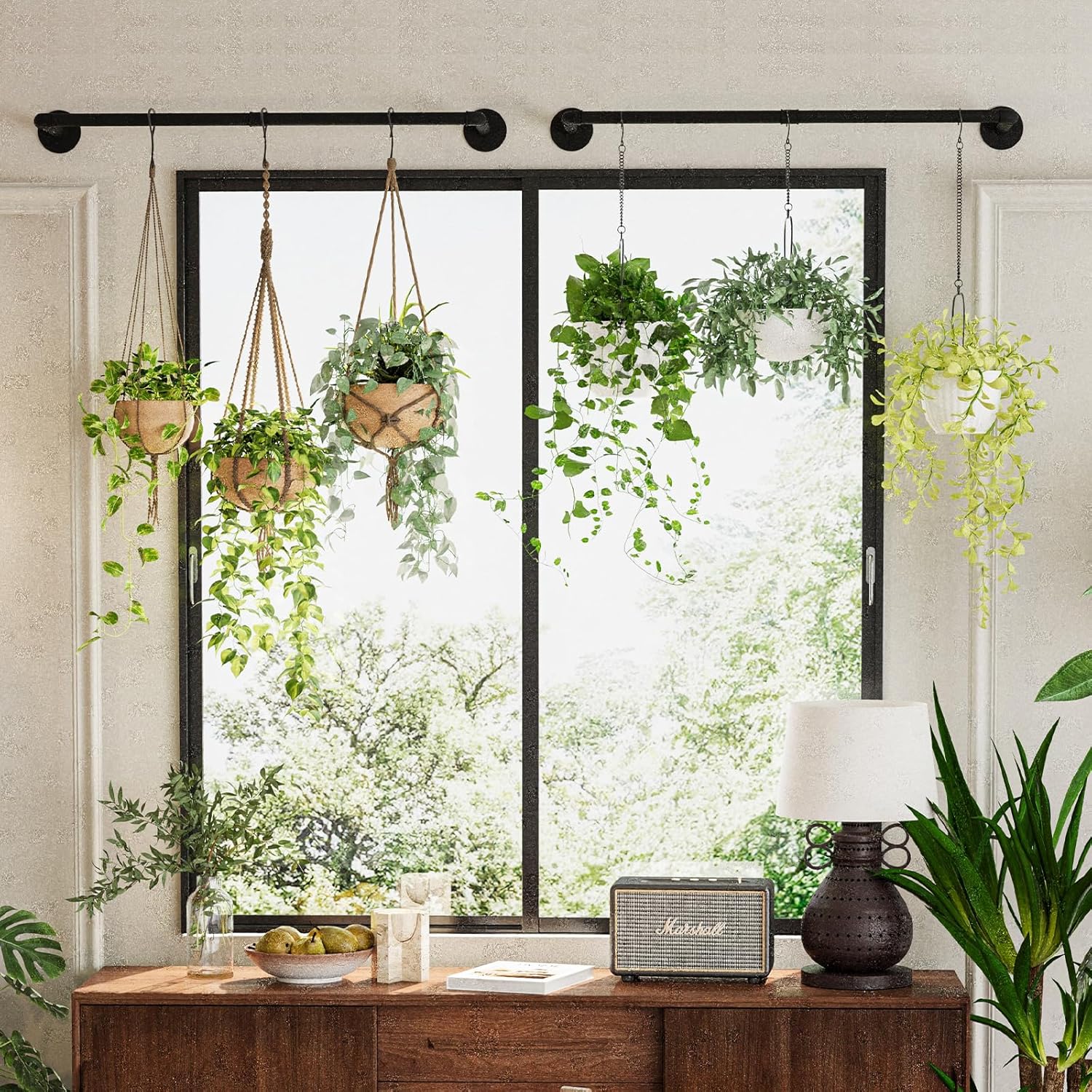 2Pc Hanging Planters for Indoor Plants Plant Hanger Indoor Hanging Plant Holder Black Metal Rod(Pot/Chain/Plant not Included