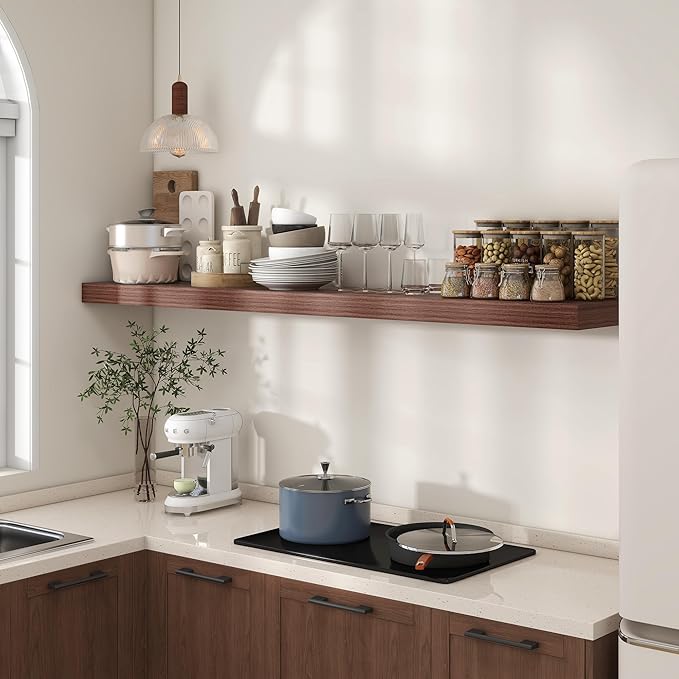 - DEEPER & THICKER SHELF- Our floating shelves measure 72W x 11.6D x 2H, deeper and thicker than usual wall shelves, which create more storage and display space for your home
