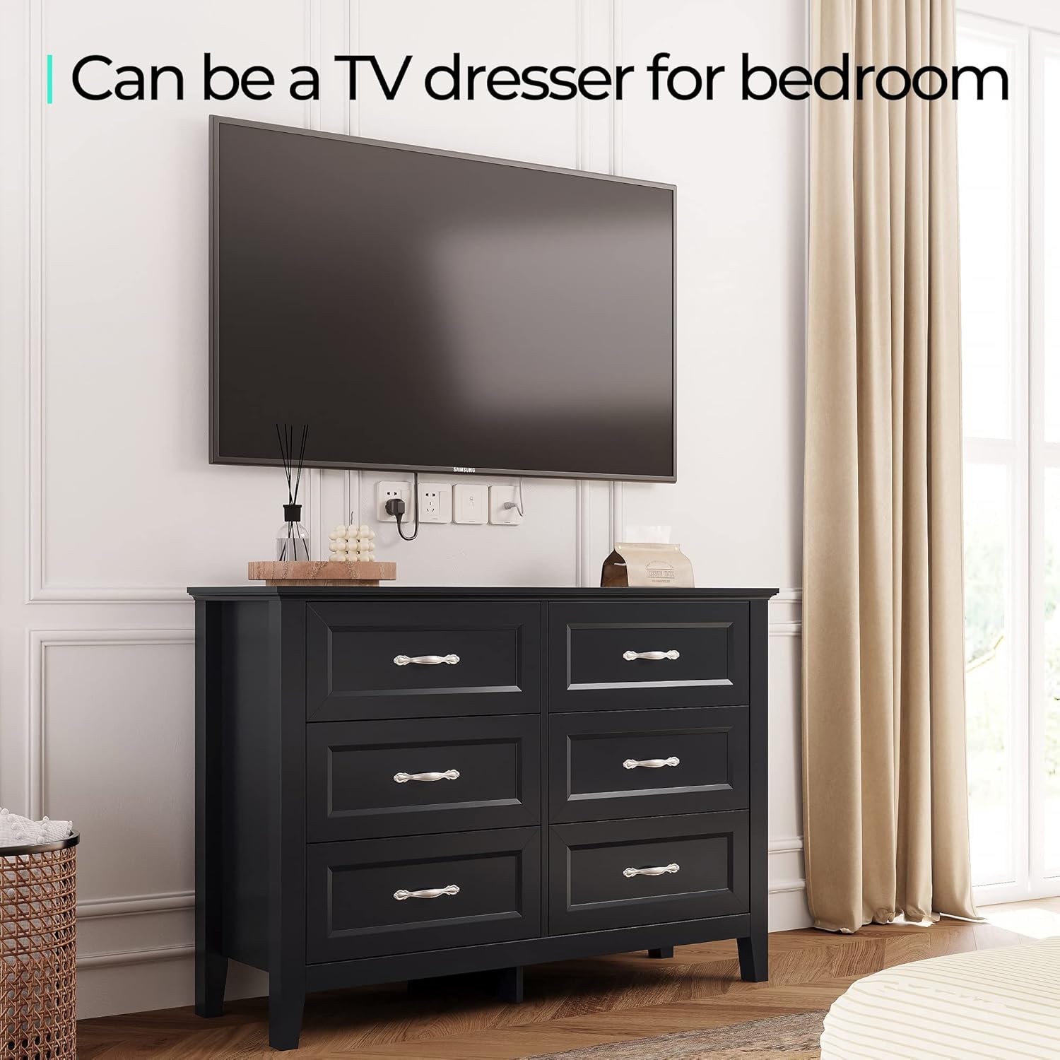 - [MULTIFUNCTIONAL STORAGE MASTER] This accent dresser features 6 spacious drawers for clothes, books, and other items, offering both practicality and visual appeal. this classic farmhouse dresser can be placed in various spaces—guest room for essentials, entryway for keys and leash, or even as a living room TV stand, showcasing both style and functionality.