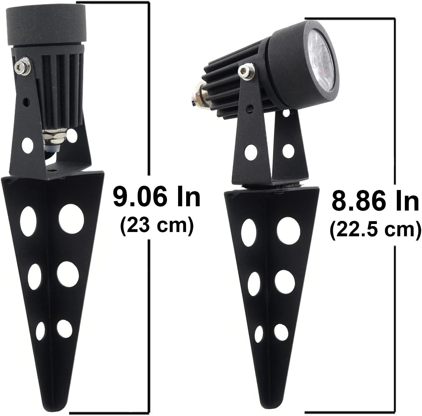 - Cast aluminum textured black finish spotlight fixture, with clear impact resistant lens on fixture