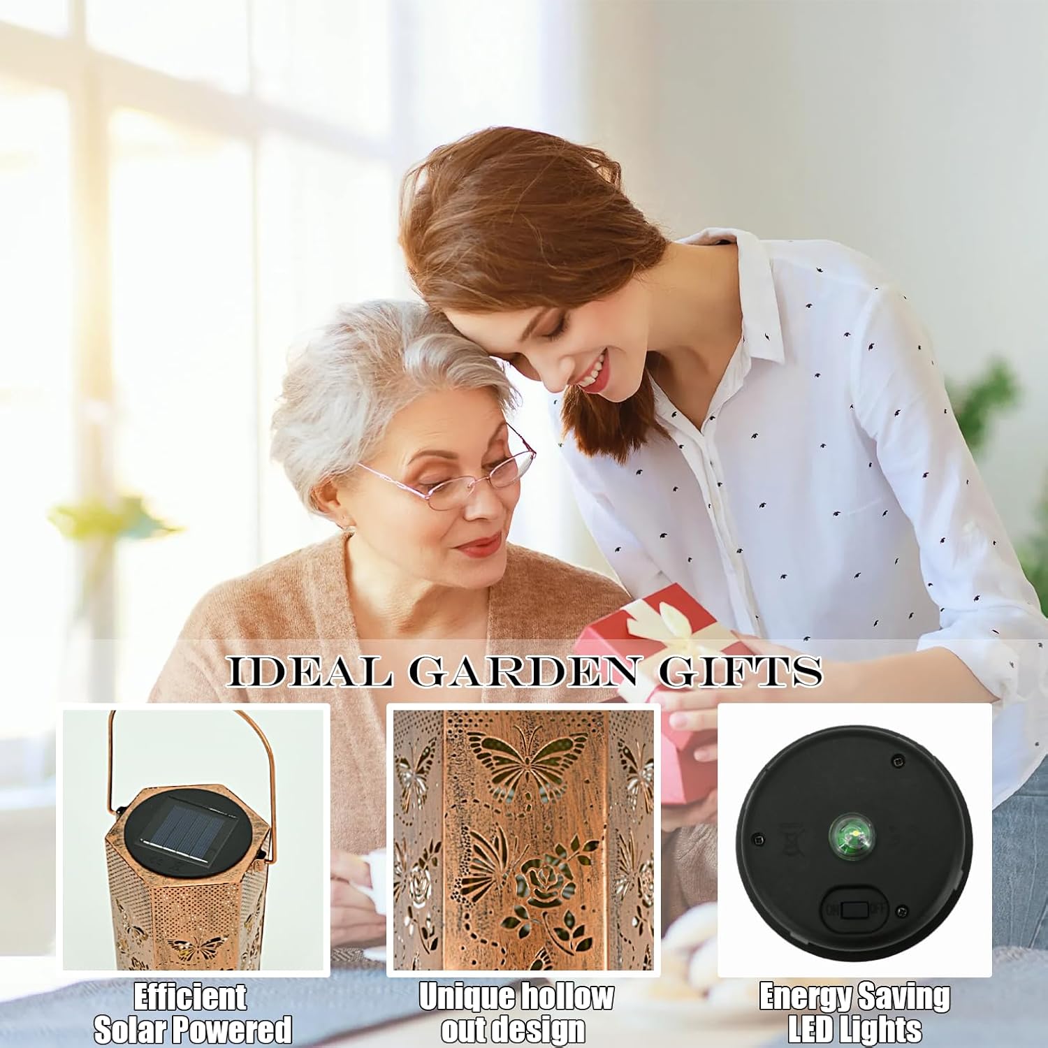 - Imaginative Garden Decor - Eandisom Outdoor Solar Lanterns are crafted from upgraded durable metal, The retro appearance, with gold copper color and hollow out metal veneer, gorgeous color, casts bright and warm light in darkness, accompanied by gorgeous and graceful patterns, adding a beautiful atmosphere to the surrounding environment. Add illuminated charm to a garden, patio, porch and outdoor tabletop with these solar lantern lights. Make your outdoor spaces unique and amazing.