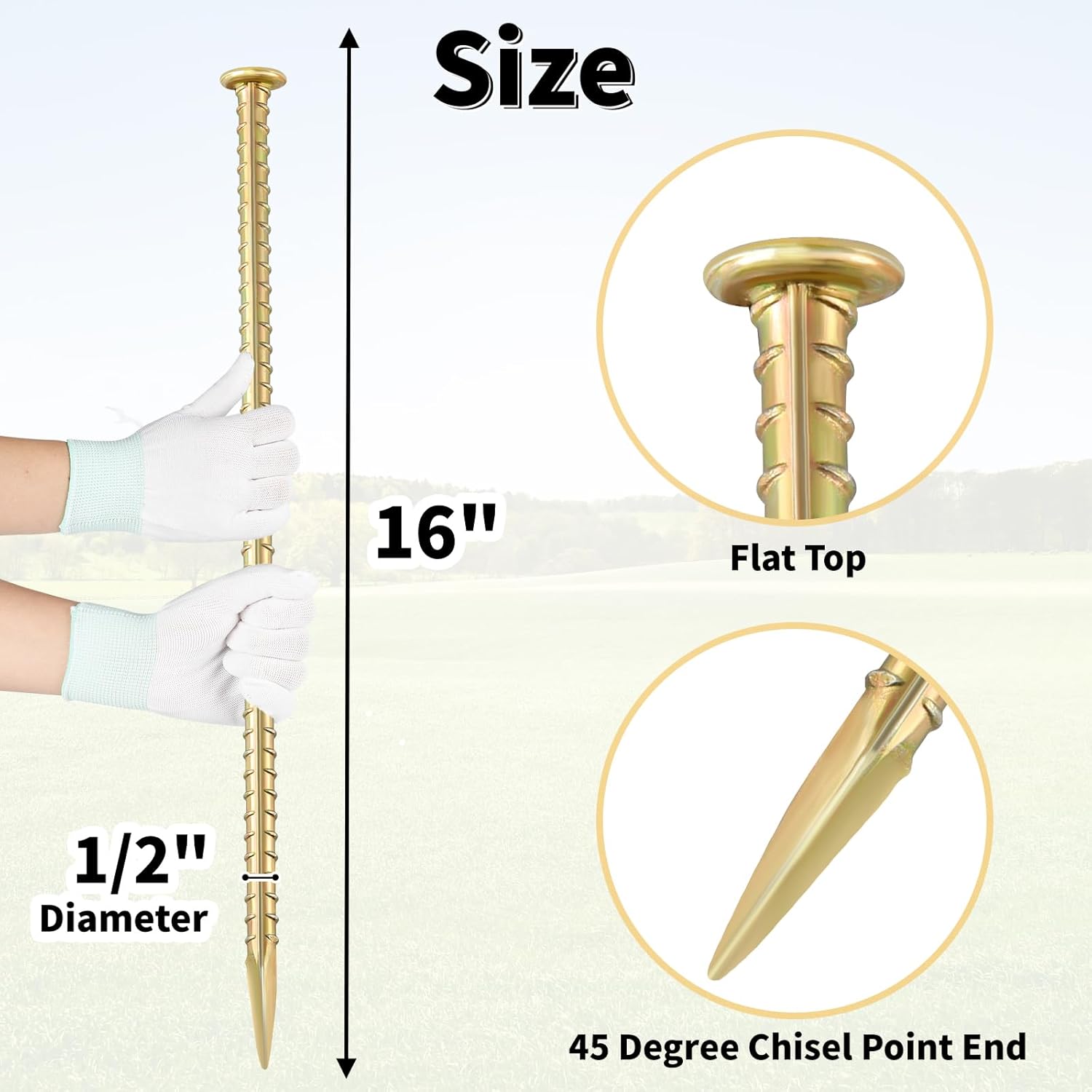 - Style : 16 Inch Rebar Stakes 1/2 Inch Diameter Galvanized Steel Ground Anchors Heavy Duty