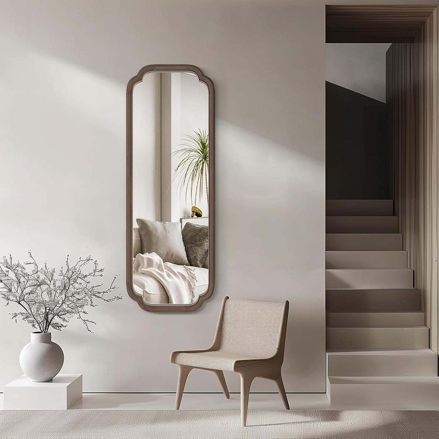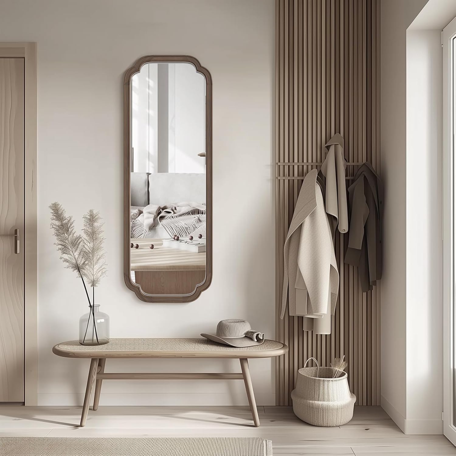 WallBeyond Full Length Mirror Wall Mounted 43"x16", Rustic Wooden Frame Floor Mirror, Large Full Body Mirror for Bedroom, Leaning or Hanging Against Wall (Walnut Solid Wood)