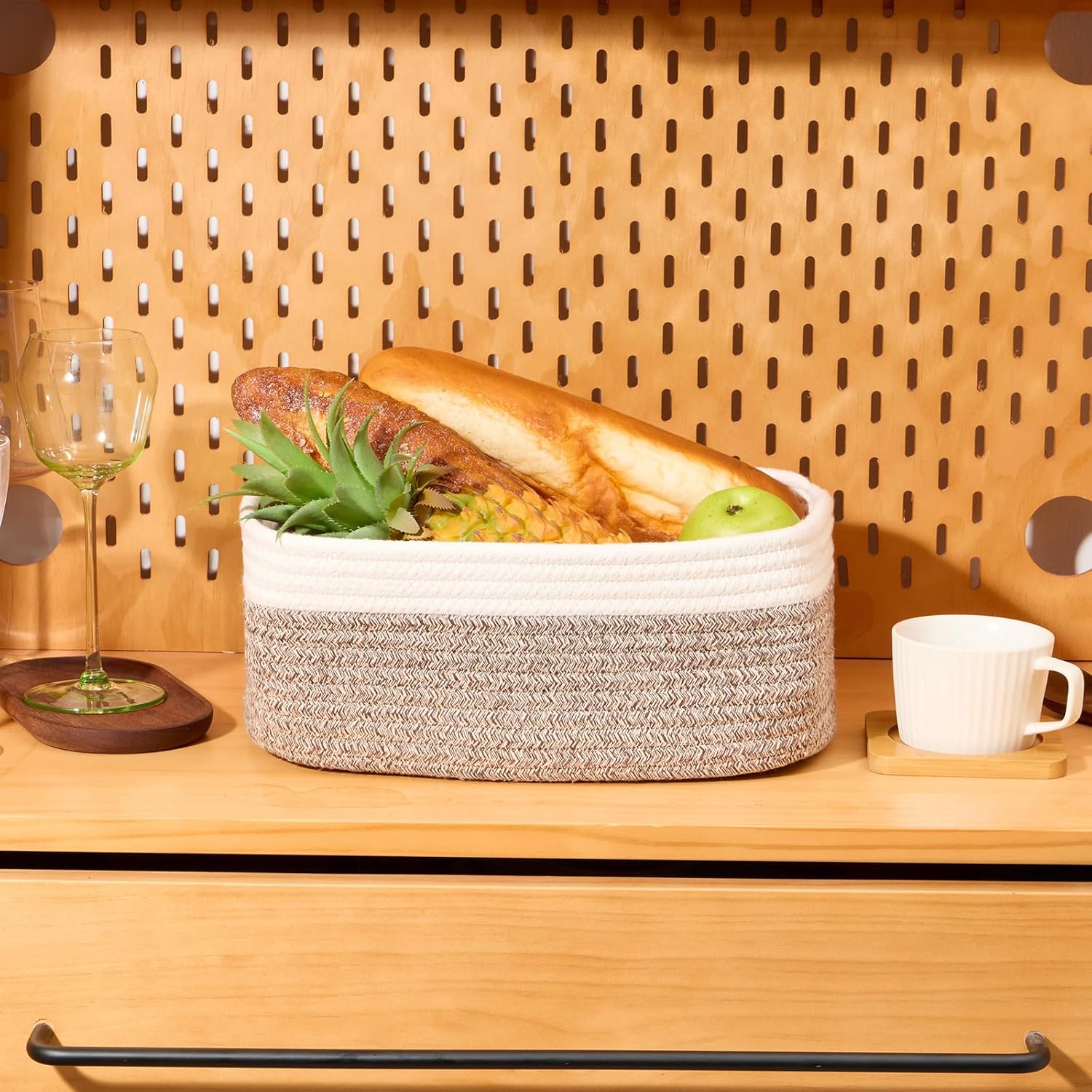 - [ Soft and Durable ]: Our shelf basket is hand-woven by skilled artisans using high-quality natural cotton rope that's ultra-soft and durable. No odor or sharp corners, making it safe for babies. Ideal for nurseries and playrooms