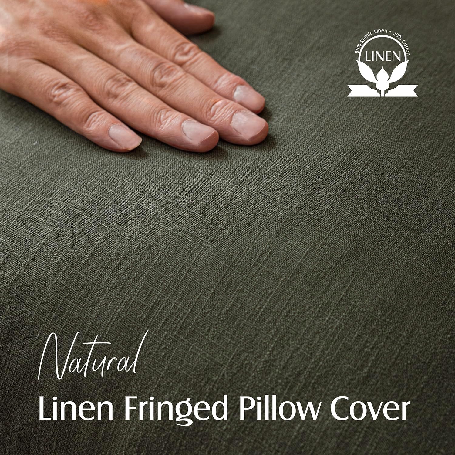 Foindtower Set of 2 Decorative Linen Fringe Throw Pillow Covers Cozy Farmhouse Cushion Cover with Tassels Accent Pillowcase for Couch Chair Sofa Bed Living Room Home Decor,22×22 Inch,Dark Olive Green