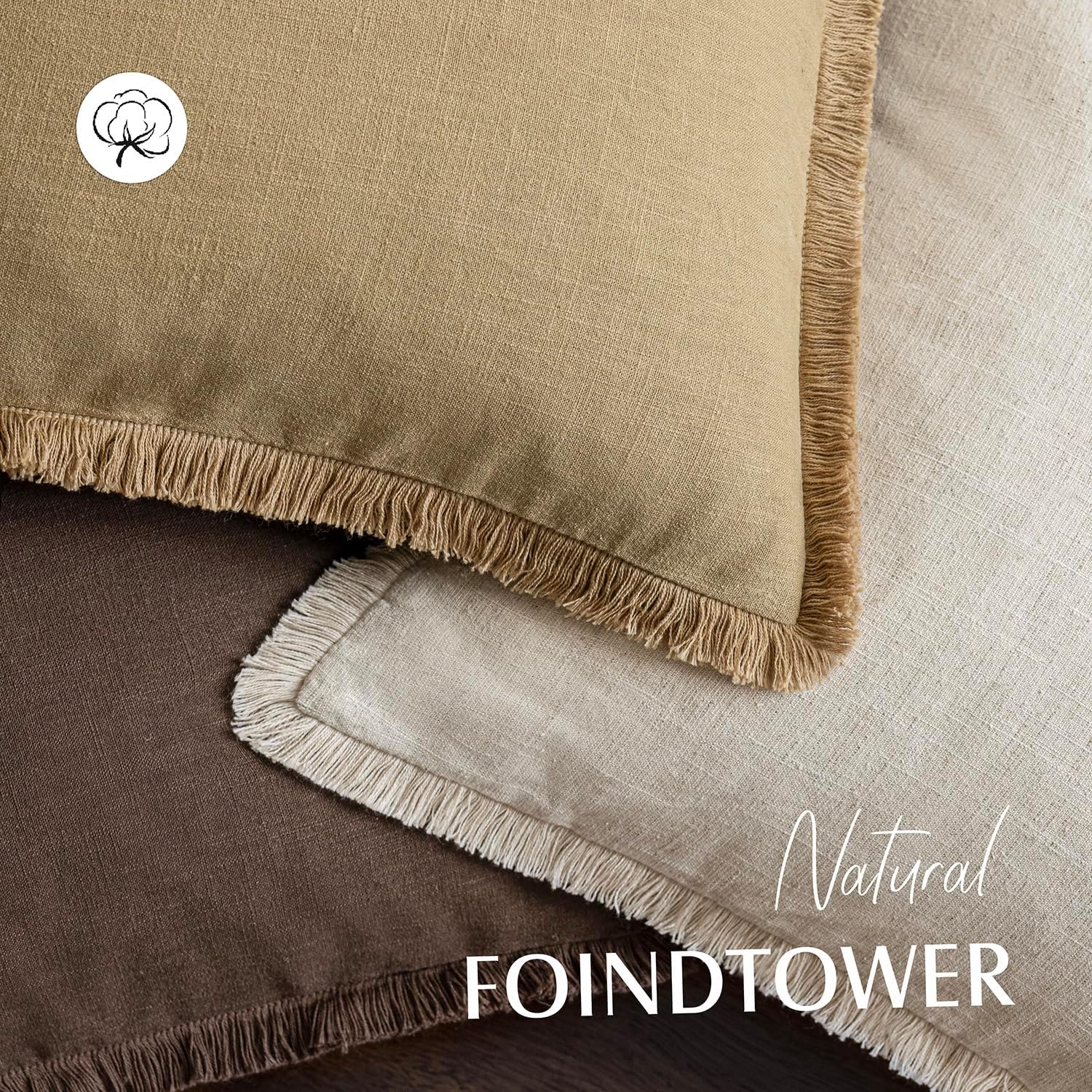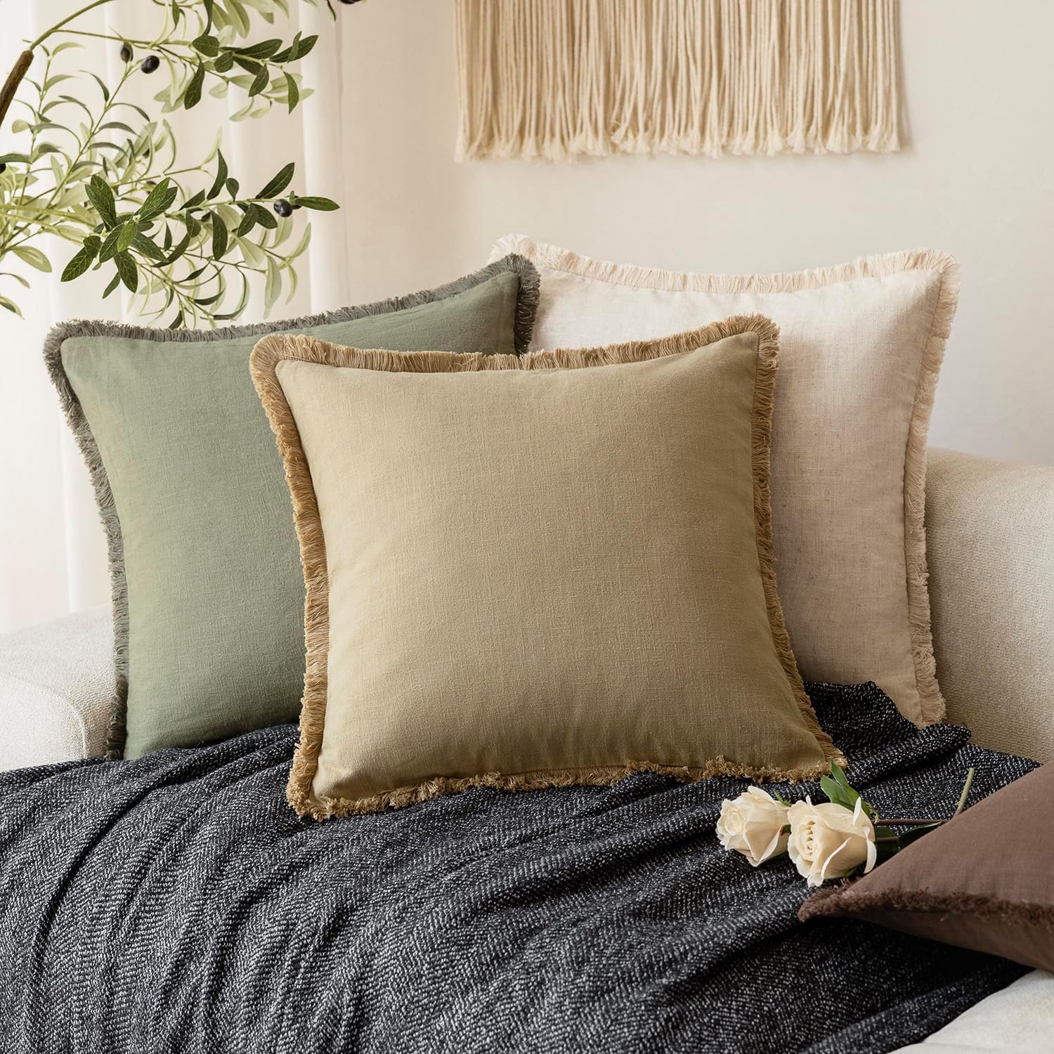 Foindtower Set of 2 Decorative Linen Fringe Throw Pillow Covers Farmhouse Cushion Cover with Tassels Soft Accent Pillowcase for Couch Chair Sofa Bed Living Room Home Decor,20×20 Inch,Light Khaki Taupe