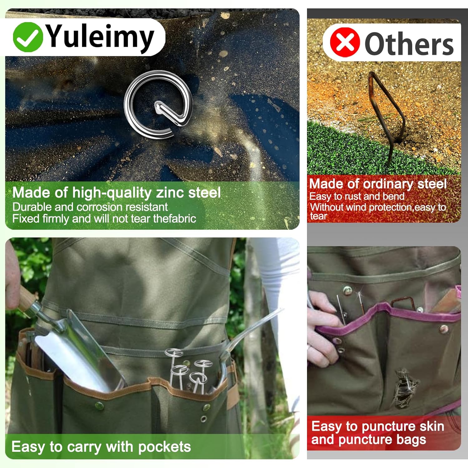 - Multi-Surface Application: Secures weed barriers, landscape fabric, tents, tarps, erosion blankets, holiday decor, and artificial turf on soil, gravel, or slopes