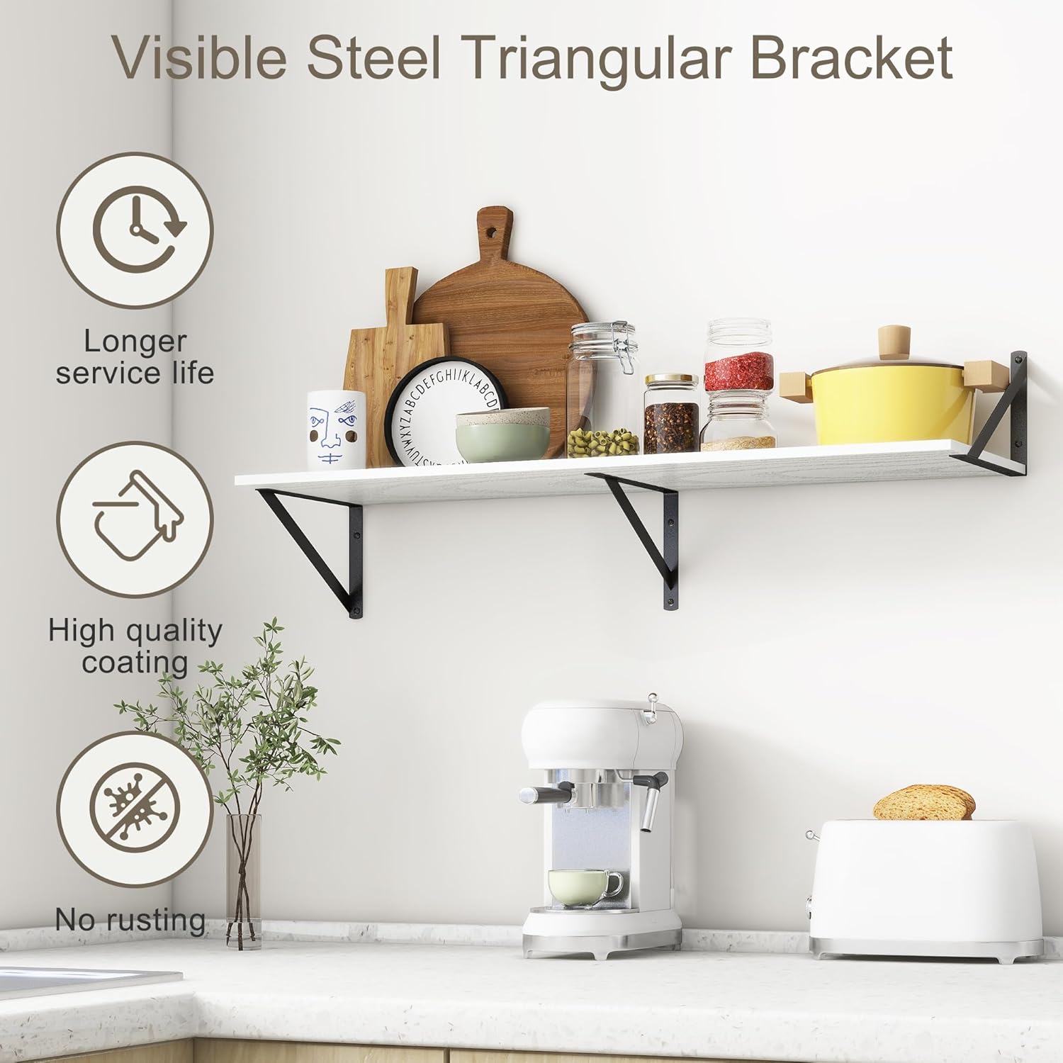 - ăFARMHOUSE RUSTIC WALL SHELFăThese floating shelves are made of premium engineered wood board and visible triangular bracket. The rustic wooden grain surface add character and warmth to any modern or traditional interior with these deep floating shelves, contrast shelves at staggering heights on the wall or mount side-by-side or in the corner for a clean streamlined look.
