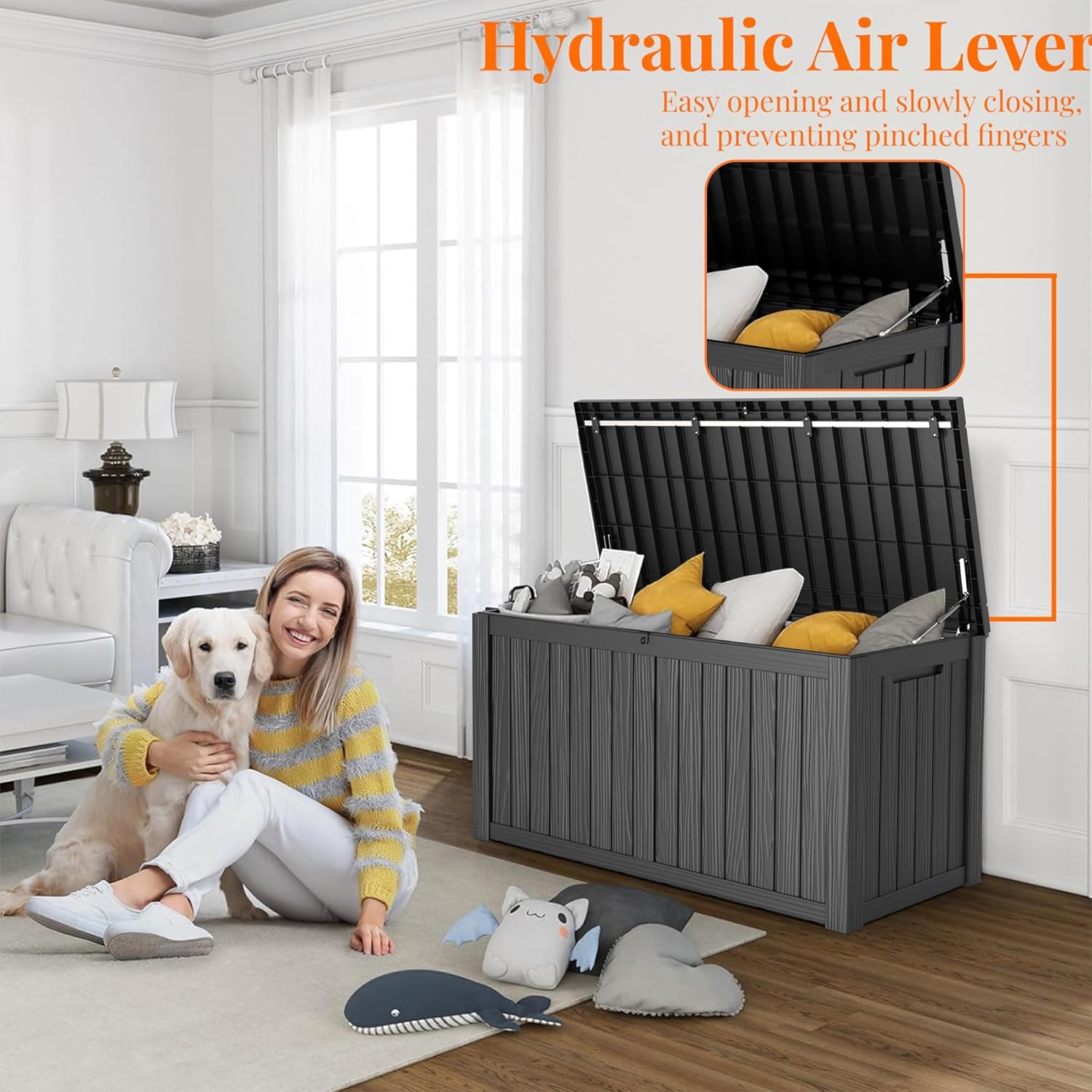 150 Gallon Resin Deck Box, Lockable Patio Outdoor Storage Box for Furniture, Garden Tools and Tools Storage, Waterproof Outside Storage Boxes - Black