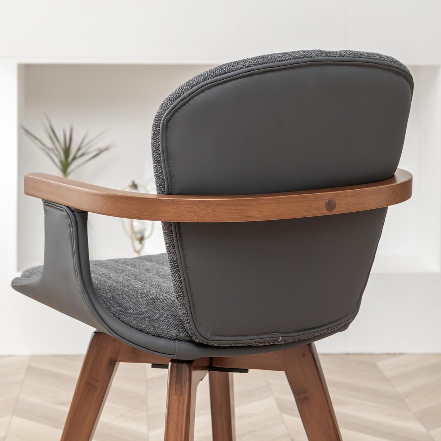 LUNLING Swivel Dining Chairs Set of 2, Mid Century Modern Gray Fabric+Faux Leather Kitchen Chairs with Arms,Bamboo Legs Side Chairs No Wheels,Accent Chair for Dining Rooms and Offices(Gray Fabric)