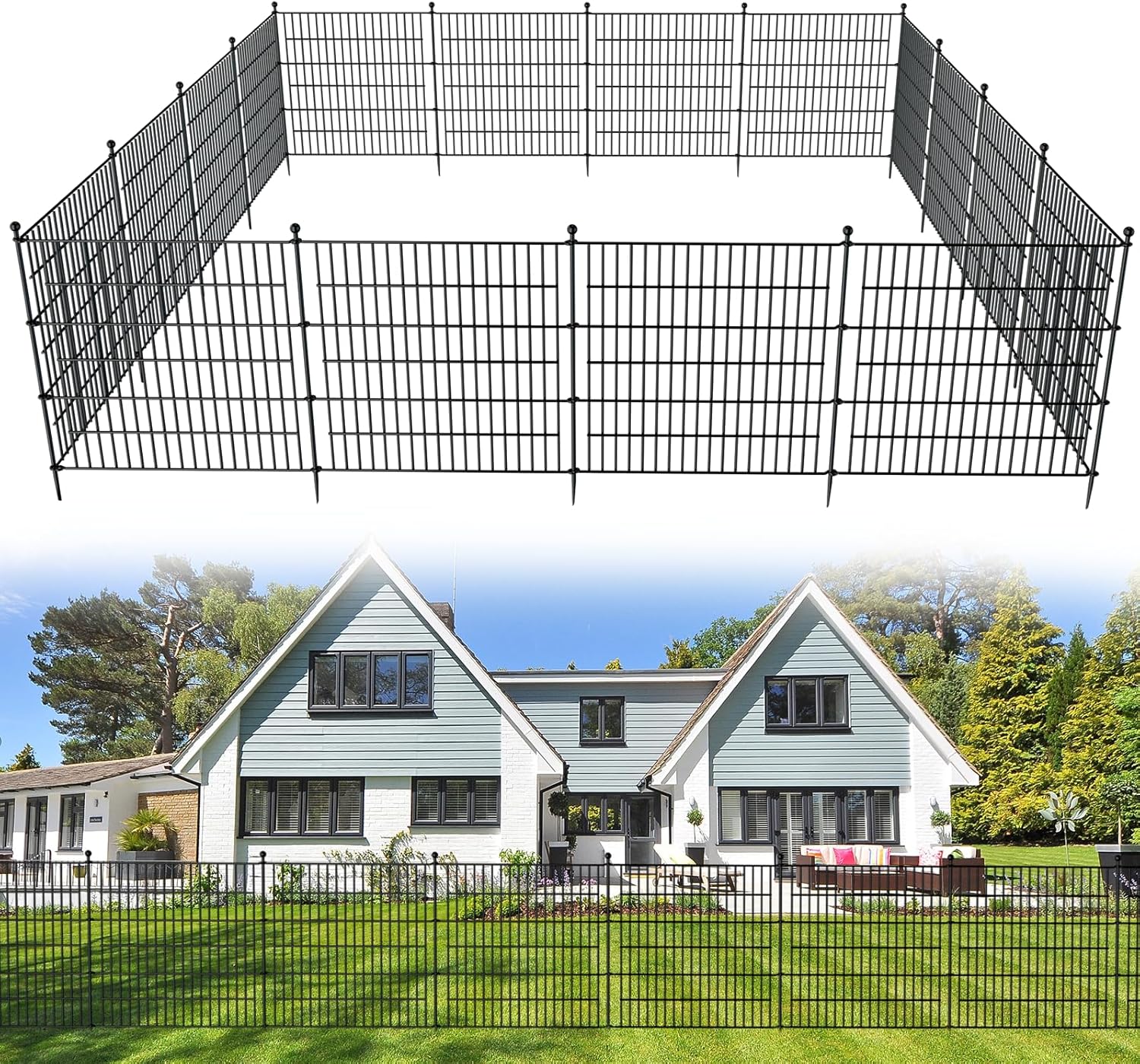 - LOW-MAINTENANCE & RUSTPROOF MATERIAL>>Say goodbye to the hassle of maintaining wooden fences. Our rustproof metal garden fence is made from high-quality wrought iron that won't rot, warp, or fade over time. Enjoy minimal upkeep and years of reliable performance in your yard and garden.
