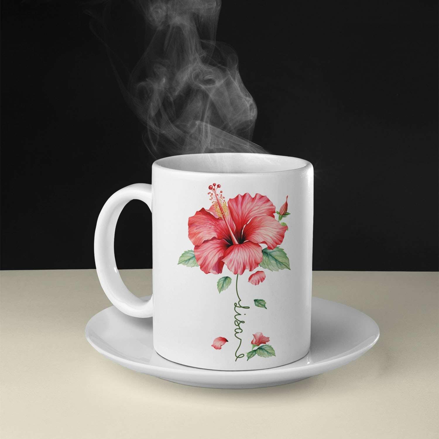 - π UNIQUE DESIGN MUG: Enjoy a touch of the tropics with this "Personalized Hibiscus Blossom Design Mug" showcasing a hibiscus flower and a customized name. Click "Customize Now" to add a name and create a gift for floral enthusiasts. It is ideal for daily use or as a unique present for birthdays, holidays, and other celebrations.