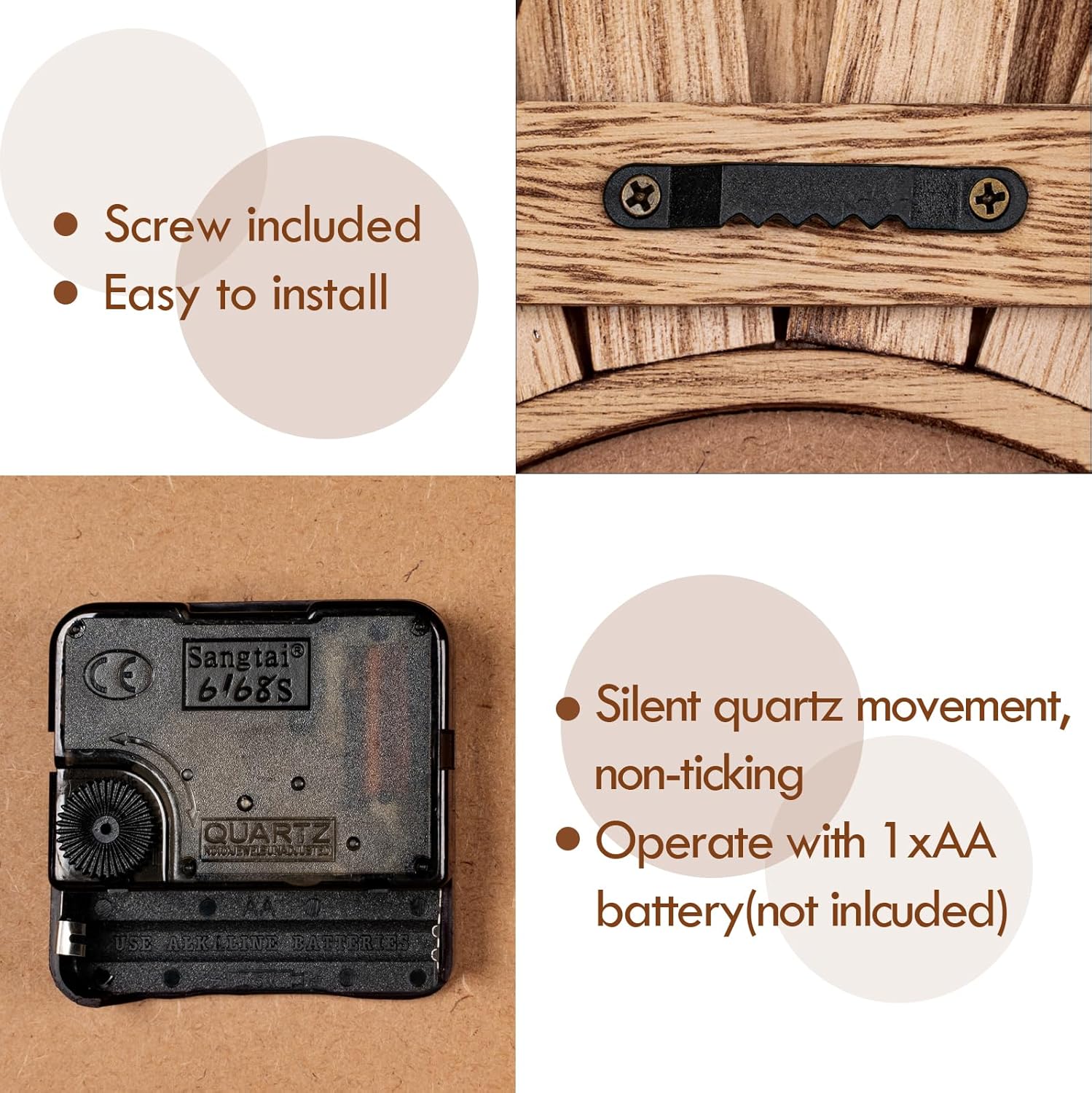 - Solid Wood Decorative Clocks: Made of solid wood with excellent handmade workmanship, this wall clocks battery operated features beautiful wood texture and rustic style, without any cheap plastic exterior or paint