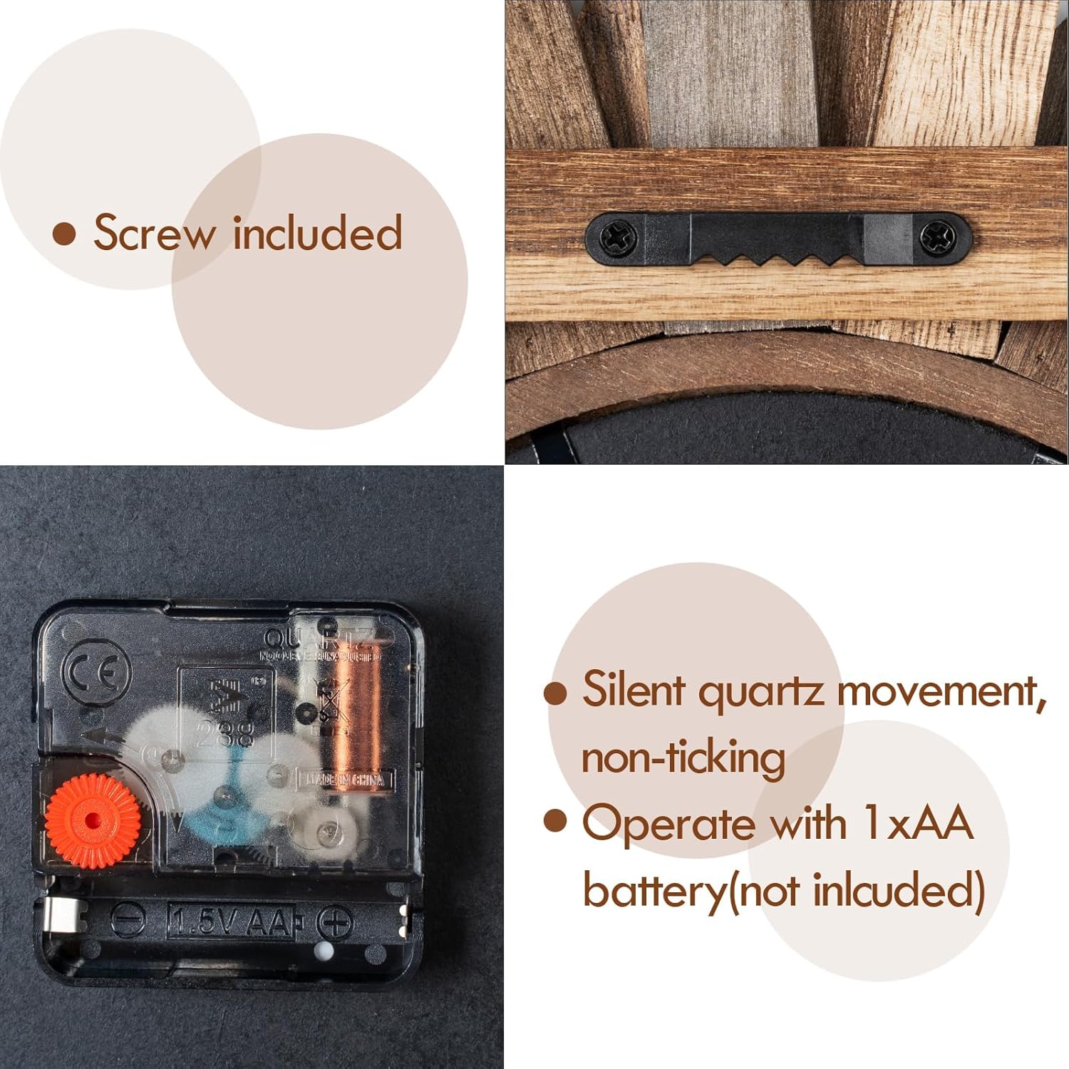 - Solid Wood Decorative Clocks: Made of solid wood with excellent handmade workmanship, this wall clocks battery operated features beautiful wood texture and rustic style, without any cheap plastic exterior or paint