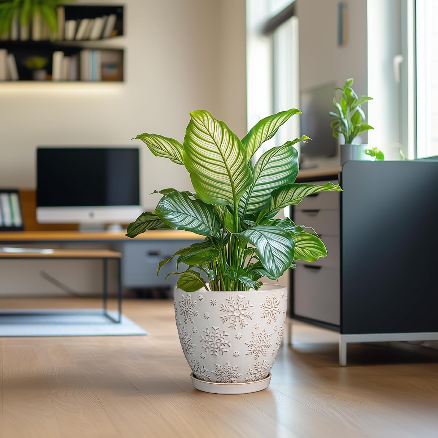 - Stylish Appearance: Our ceramic planter has a white main colour and a beautiful embossed snowflakes pattern on the surface, elegant appearance making it ideal for home decor, garden decor and office decor