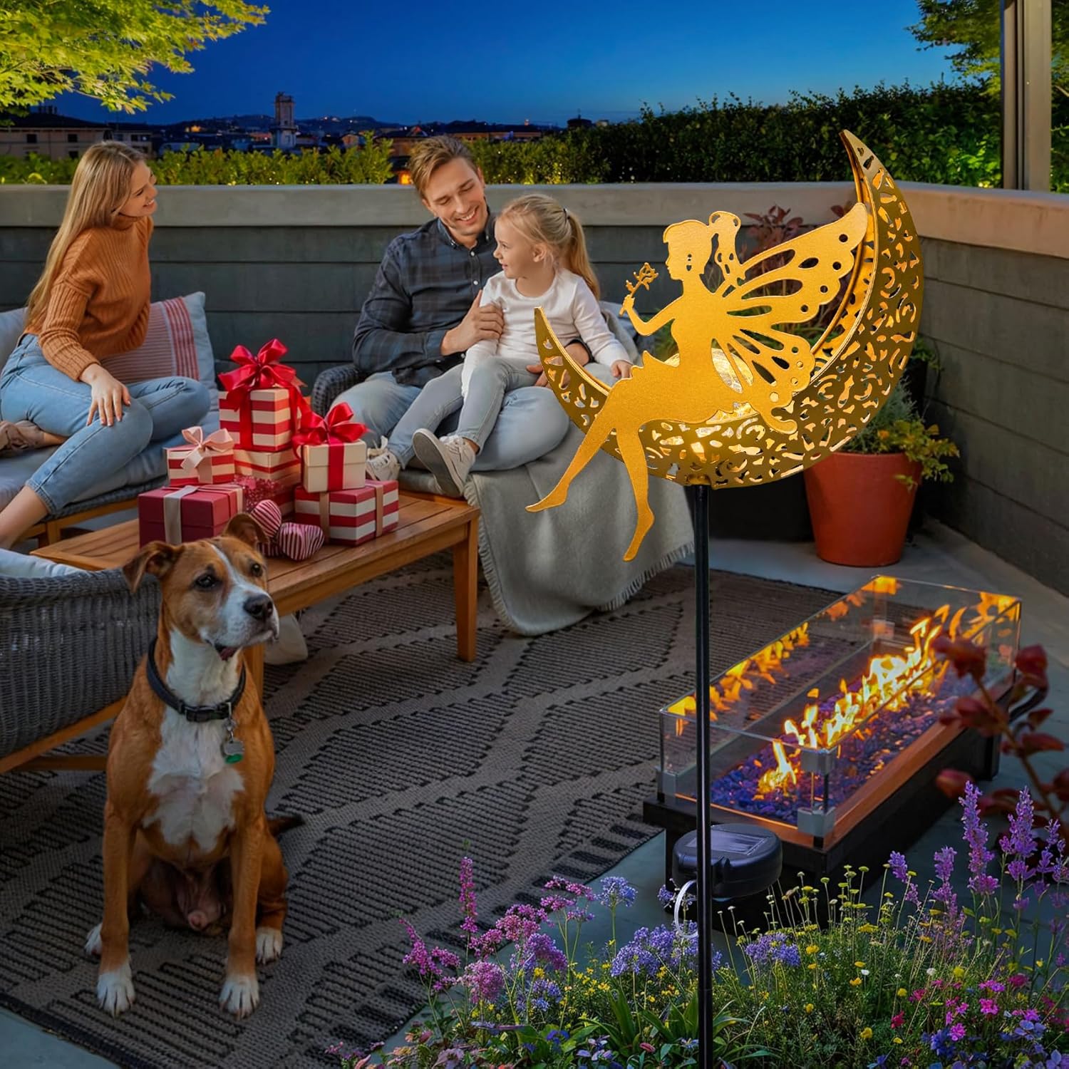 Fairy Moon Solar Lights Outdoor Garden Gifts for Mom Yard Decorations Stakes Lights, Waterproof LED Outside Backard Decor, Lawn Patio Ornaments, Mothers Day Birthday Gifts for Mom (Gold,1Pack)