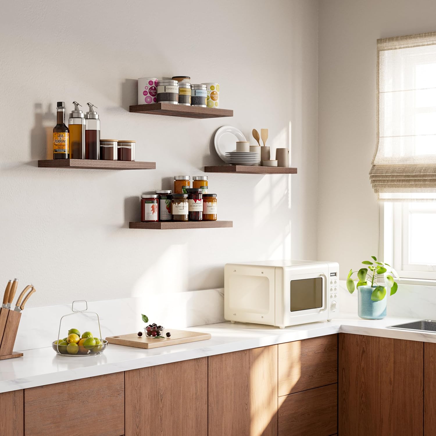 - Versatile and Stylish-- These floating shelves are perfect for adding a touch of rustic charm to any room decor. They can be used as storage or display shelves, small bookshelves, or even as decorative accents.