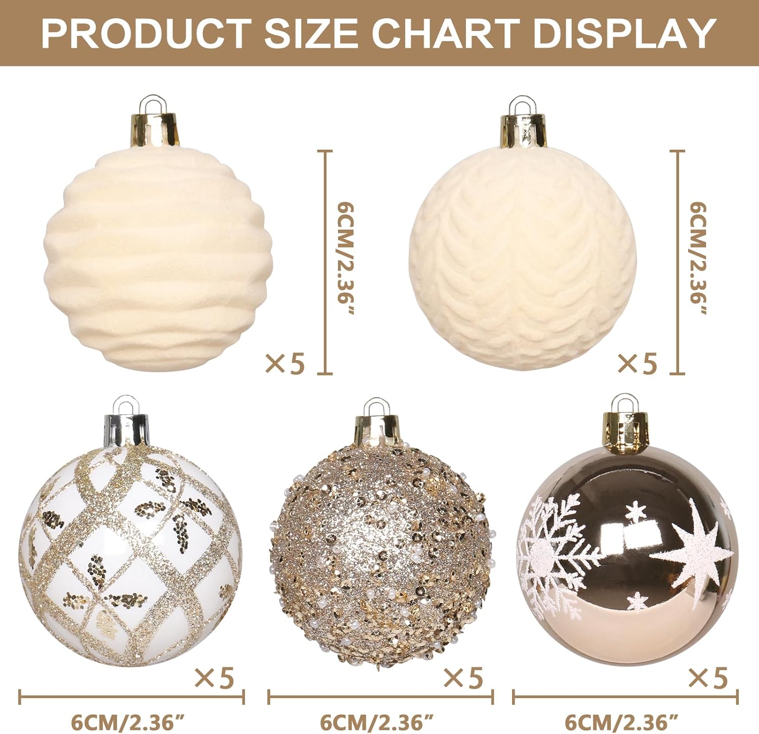 - SIZE AND QUANTITY: The size of this Christmas ball ornaments is 2.36 inches/6 cm, suitable for most Christmas tree decorations. A box of 25pcs ensures that you have enough quantity to fill the gaps in the Christmas tree.