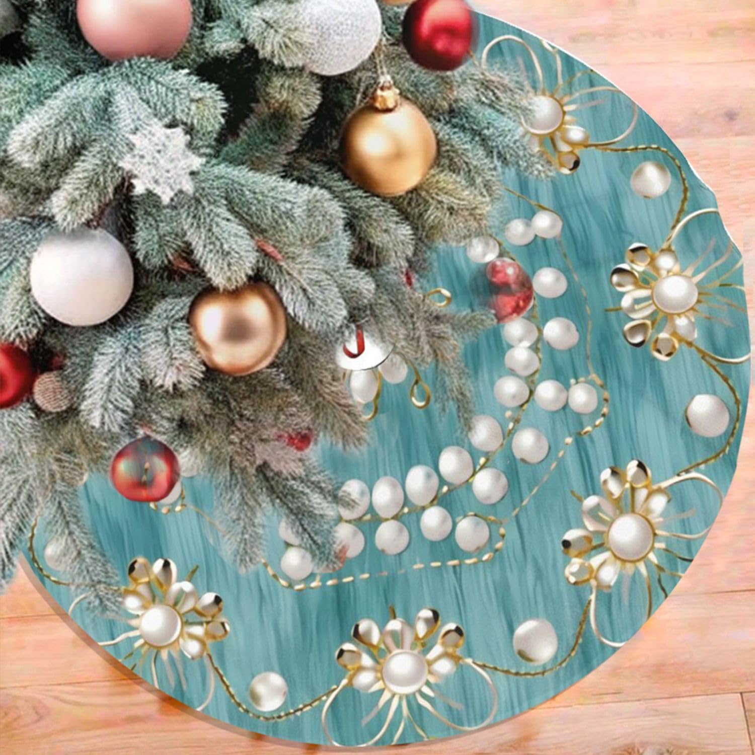 36" Christmas Tree Skirt with Elegant Aqua Pearl Christmas Angel Pattern Turquoise Tree Mat Base Cover for Xmas Festive Holiday Party Decoration Ornaments