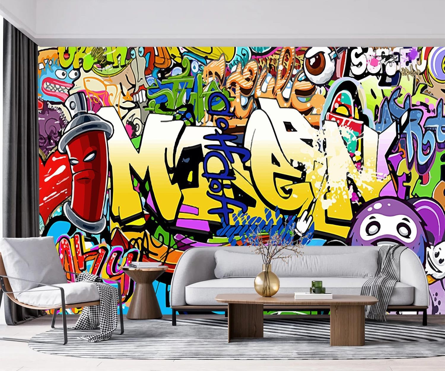 -Nursery Color Graffiti Abstract Letters Bedroom Wallpaper XT16 L 180" x 115"