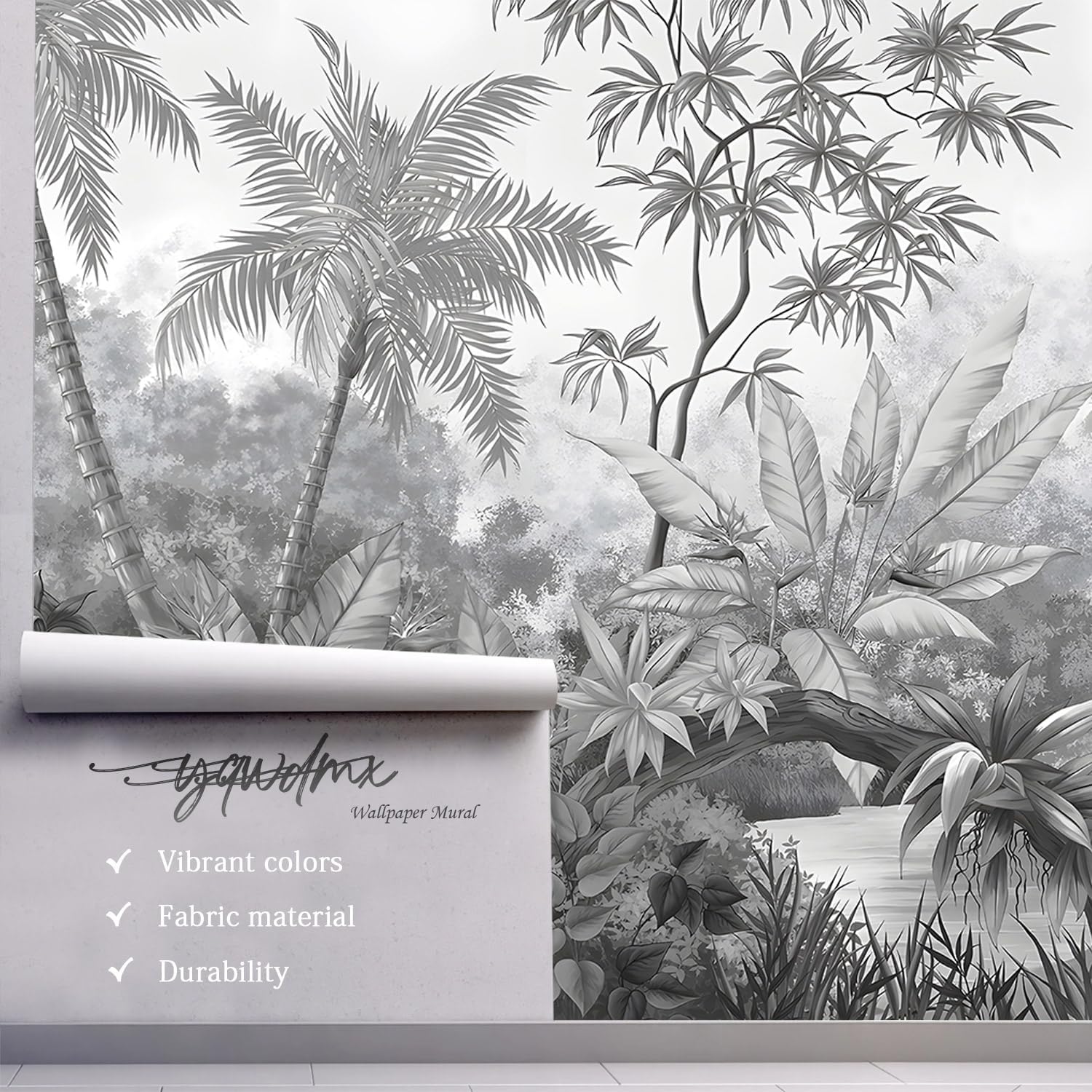 -Grey Rainforest Leaves Fabric Wallpaper Bedroom XT11 L 180" x 115"