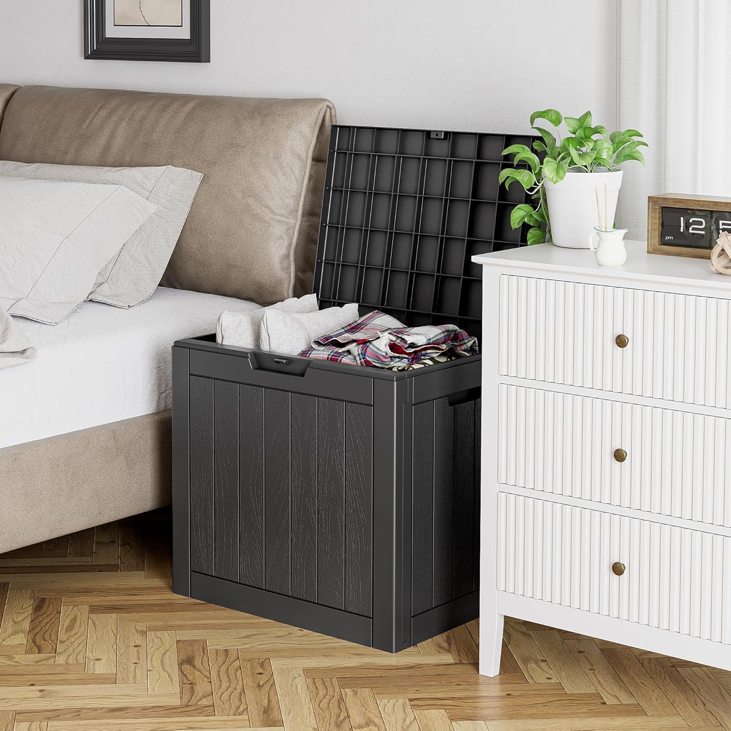 - EXTRA TABLE OR SEAT - This multifunctional deck box not only offers convenient storage but also serves as a comfortable single chair or table. With a maximum weight capacity of 265 pounds, it can easily accommodate adults, providing versatility and functionality.