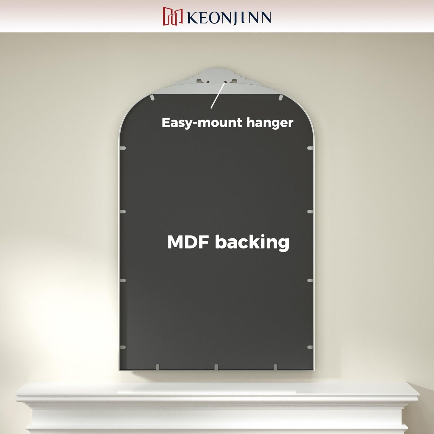 Keonjinn Vintage Mirror 30" x 36", Silver Antique Mirrors for Wall Decor, Arched Decorative Mirror for Mantle, Hallway, Living Room, Fireplace, Bedroom, Bathroom Mirror with French Cleat Mounting