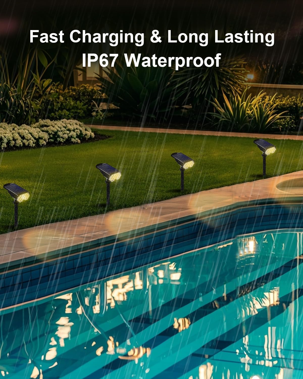 - ๐ฆ๐๐๐ฏ๐๐ง๐๐๐ ๐๐๐ญ๐๐ซ ๐๐๐ฌ๐ข๐ฌ๐ญ๐๐ง๐๐, ๐๐ง๐๐ฎ๐ซ๐ข๐ง๐ ๐๐ญ๐ซ๐๐ง๐ ๐ญ๐ก๏ผThe solar powered spotlights feature an integrated, exquisite design that outperforms split-type solar lights, especially in harsh weather conditions like storms, showcasing superior waterproof capabilities. Crafted with durable ABS material and equipped with a 2000mAh high-capacity battery, our fixtures provide a long-lasting and reliable lighting experience for your outdoor spaces.