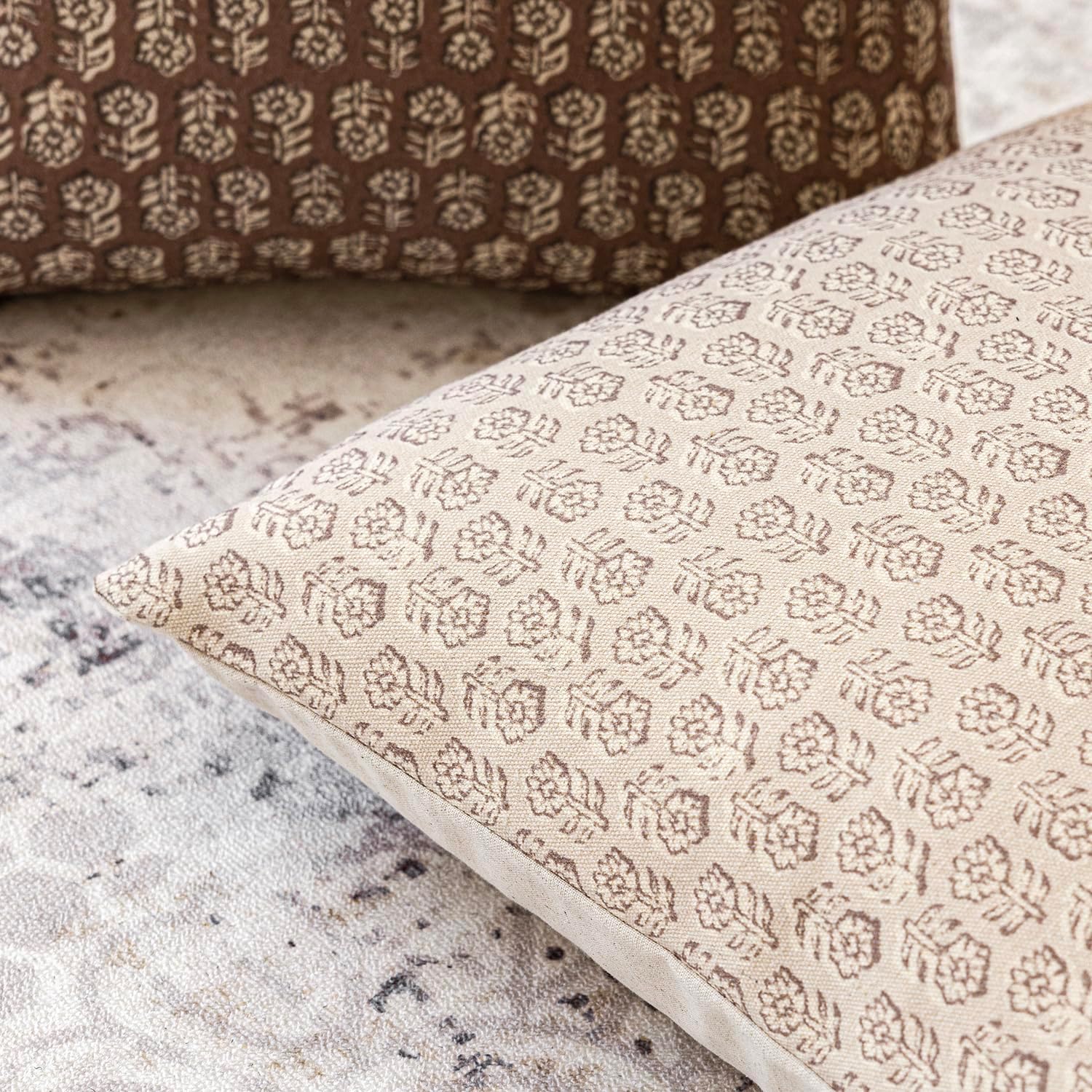 Foindtower Set of 2 Decorative Neutral Floral Print Throw Pillow Covers Vintage Accent Farmhouse Cushion Covers Boho Home Decor for Sofa Couch Chair Bedroom Living Room Outdoor,22×22 Inch,Ivory Beige