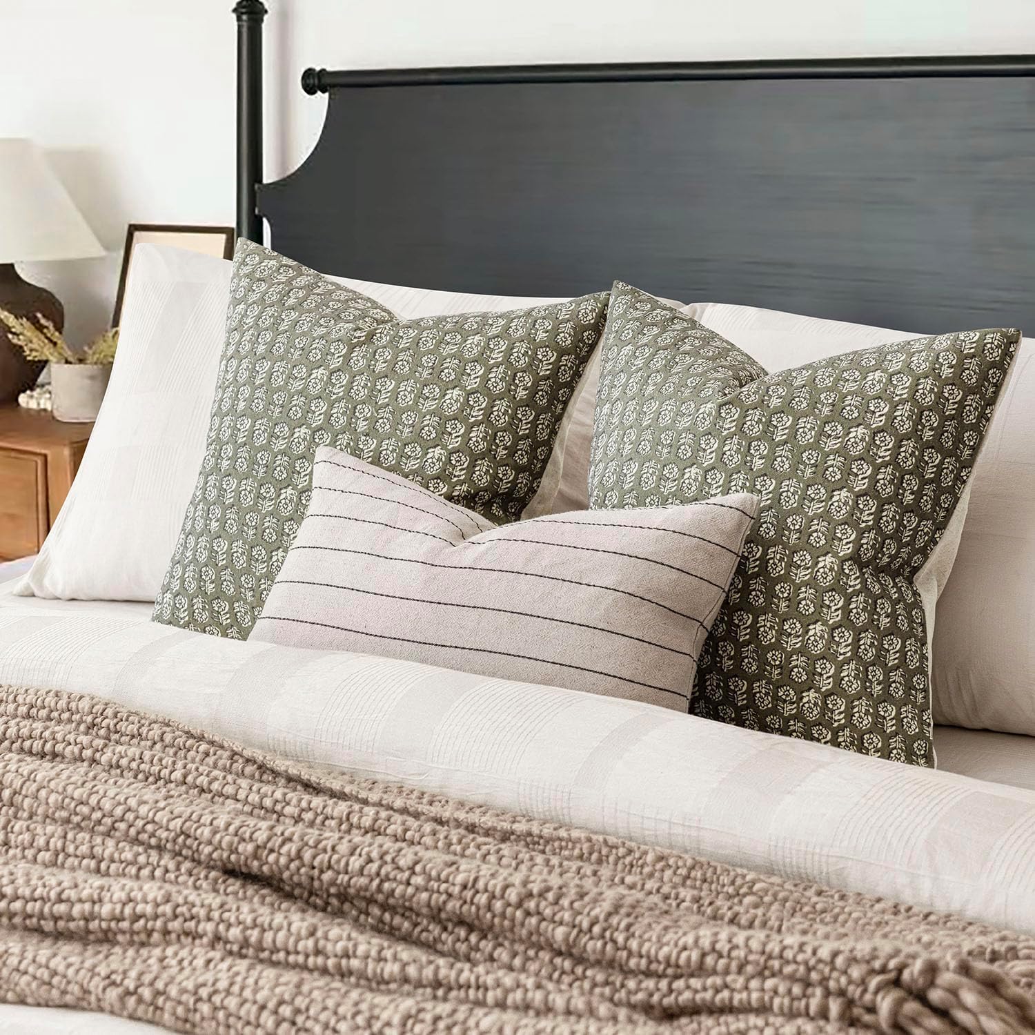 Foindtower Set of 2 Decorative Vintage Floral Print Throw Pillow Covers Neutral Modern Farmhouse Cushion Covers Boho Home Decor for Sofa Couch Chair Bedroom Living Room Outdoor,22×22 Inch,Sage Green
