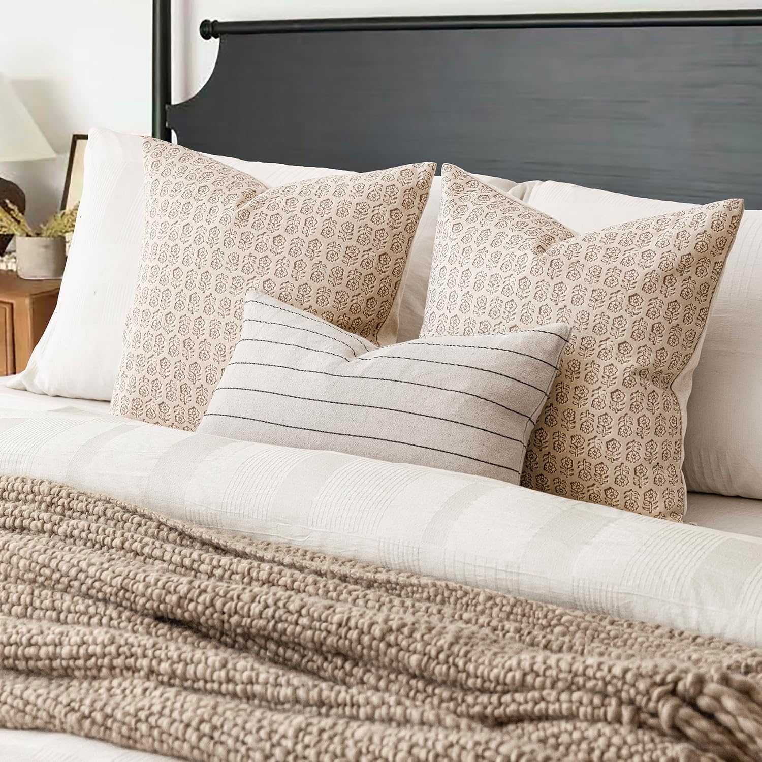 Foindtower Set of 2 Decorative Vintage Floral Print Throw Pillow Covers Neutral Modern Farmhouse Cushion Covers Boho Home Decor for Sofa Couch Chair Bedroom Living Room Outdoor,20×20 Inch,Ivory Beige