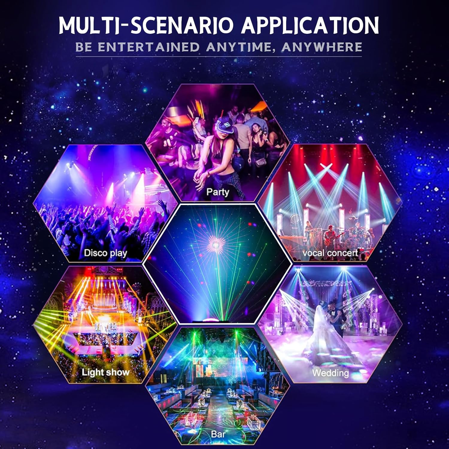- 【Sound Activated for Dynamic Performance】This stage light is a unique sound activated mode, where you can select the expected 3 sound activated modes through the remote control, or customize different voice control effects such as pattern & background light, pattern & speckle color light. The included remote is almost mind boggling. It gives you tremendous control over the light show produced by the box.