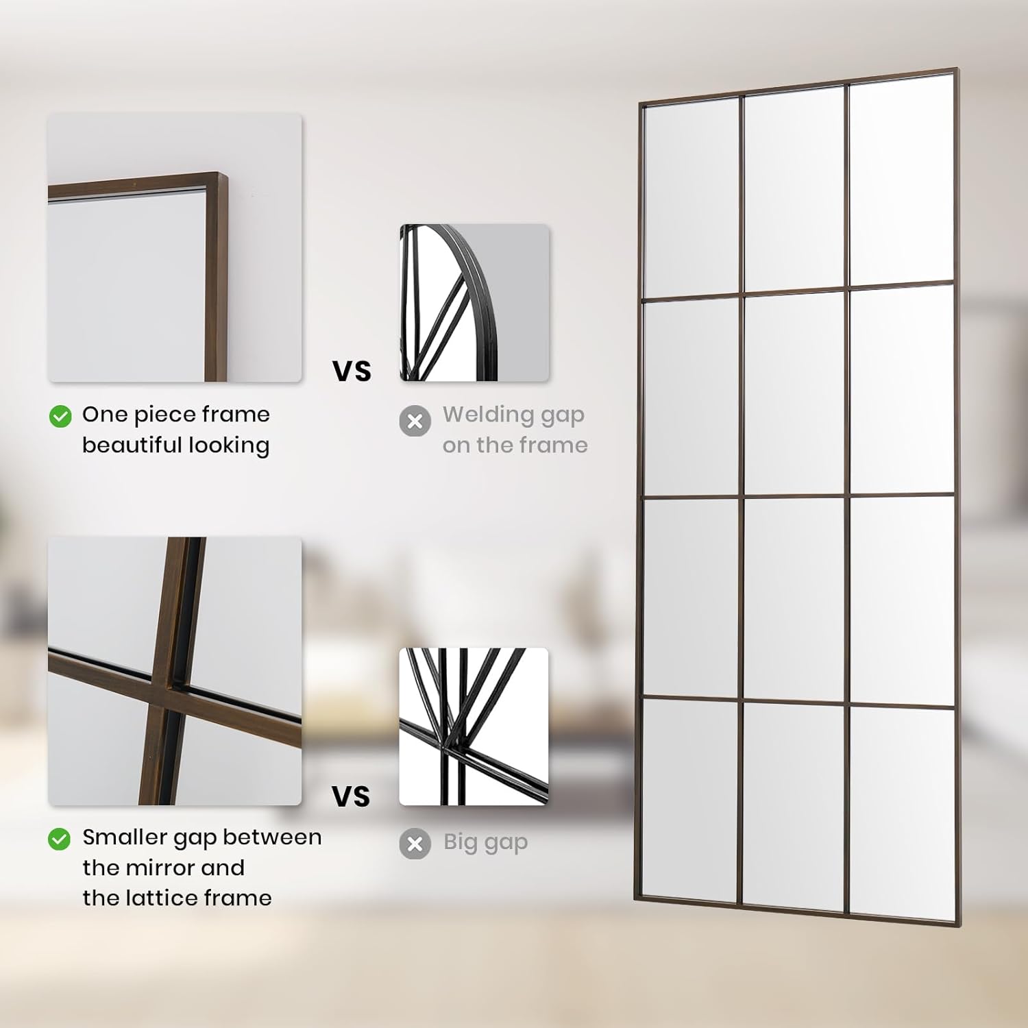 - Gifts For Everyone: This windowpane full length mirror is suitable for everyone you care about. A best gift idea for your mom, wife, partner, deaughter, sister and friend. Package including a full body mirror, installation accessiories and instruction