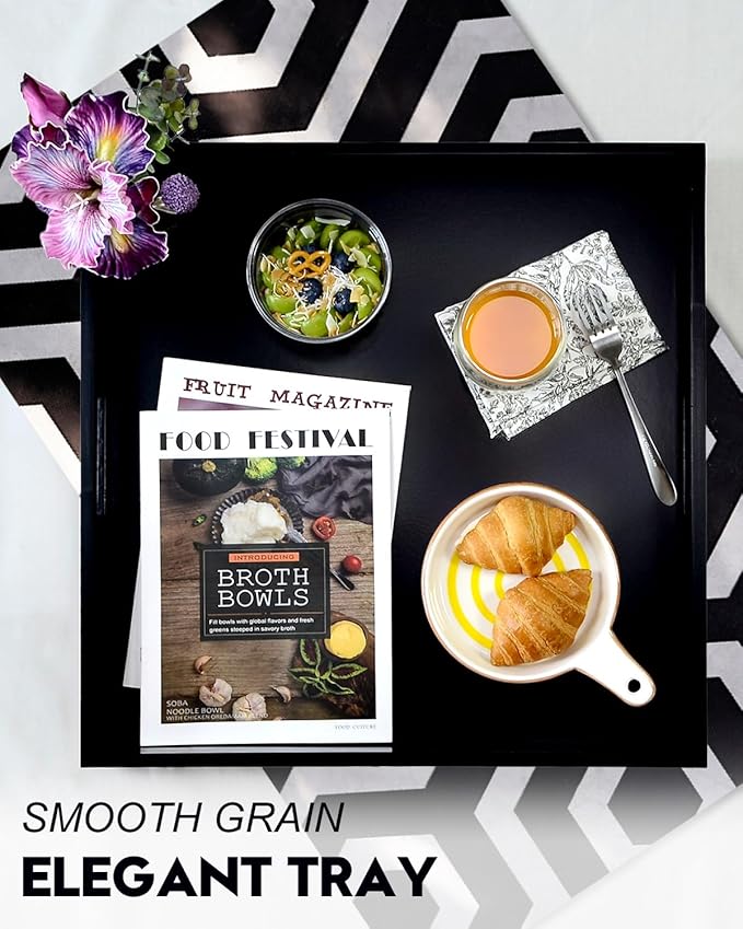 - SMOOTH ERGONOMIC HANDLES - Our square tray is designed with smooth, ergonomic handles for a comfortable grip. The cutout handles provide ample space, making it easy to carry items from one room to another.