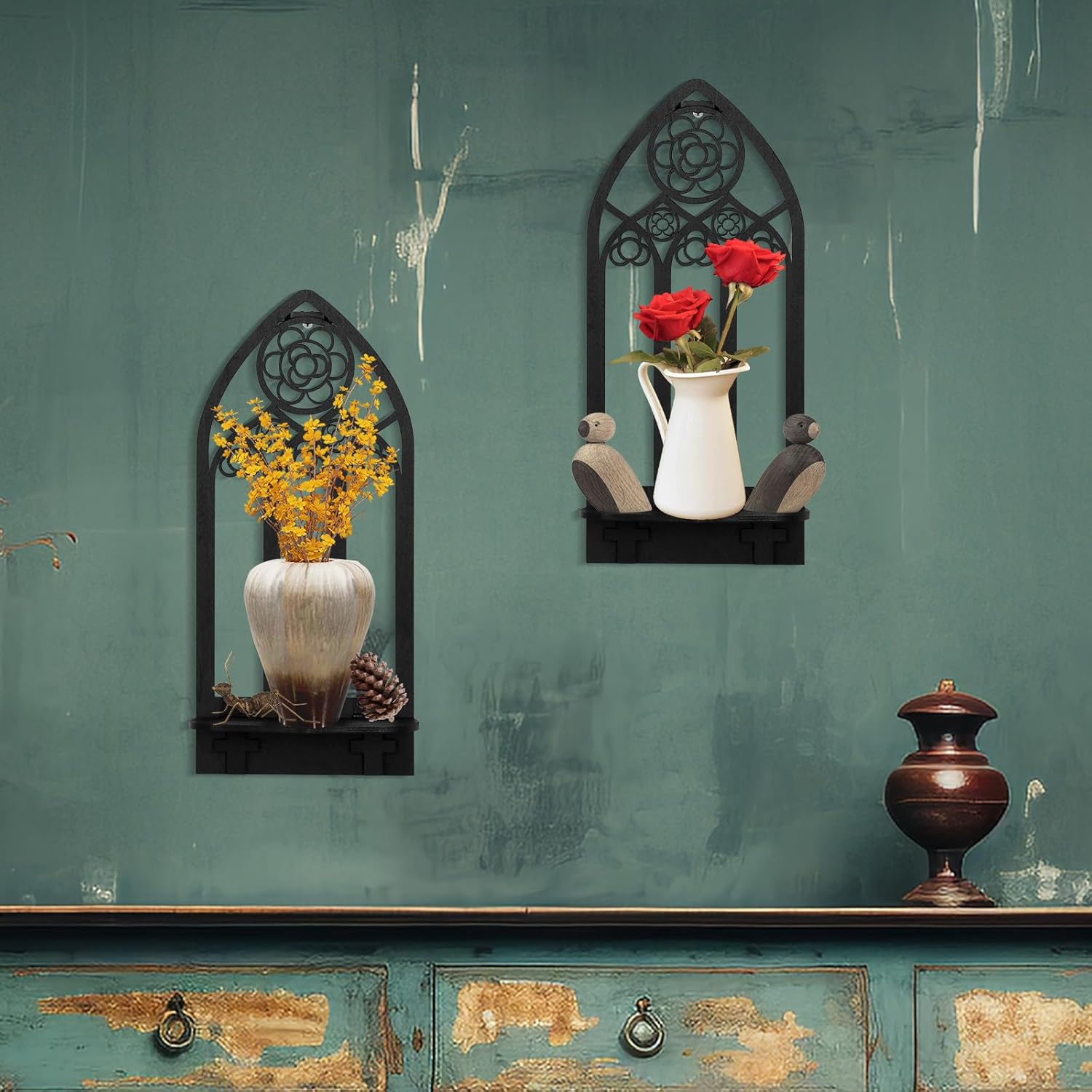 2 Pcs Gothic Sconces Wall Decor - Black Goth Arched Church Wall Art Gothic Home Decor for Living Room, Kitchen, Dining Room (Elegant)