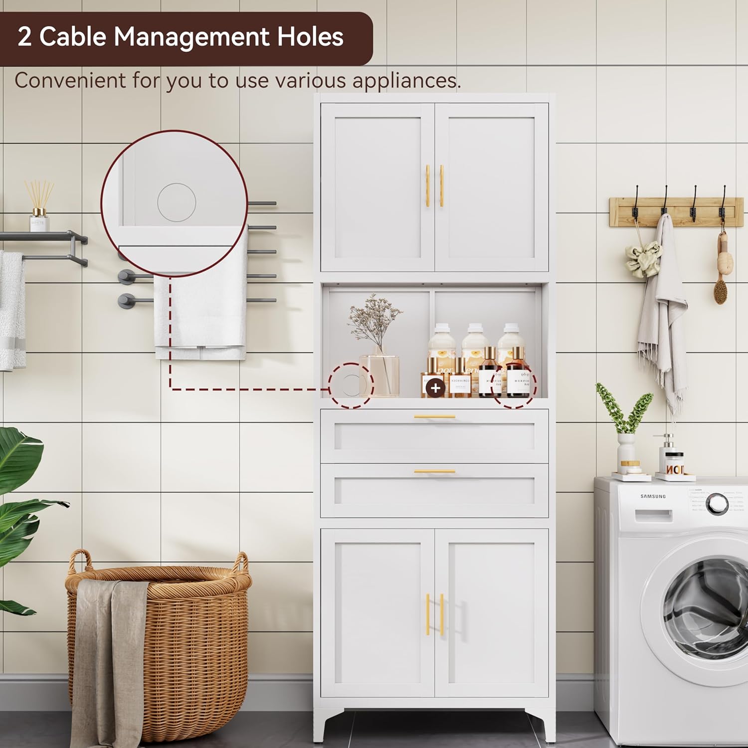 75” Tall Kitchen Pantry Storage Cabinet, Metal Bathroom Storage Cabinet with 2 Drawers and Adjustable Shelves, Kitchen Pantry Cupboard, Freestanding Cupboard for Bathroom, Living Room (White)