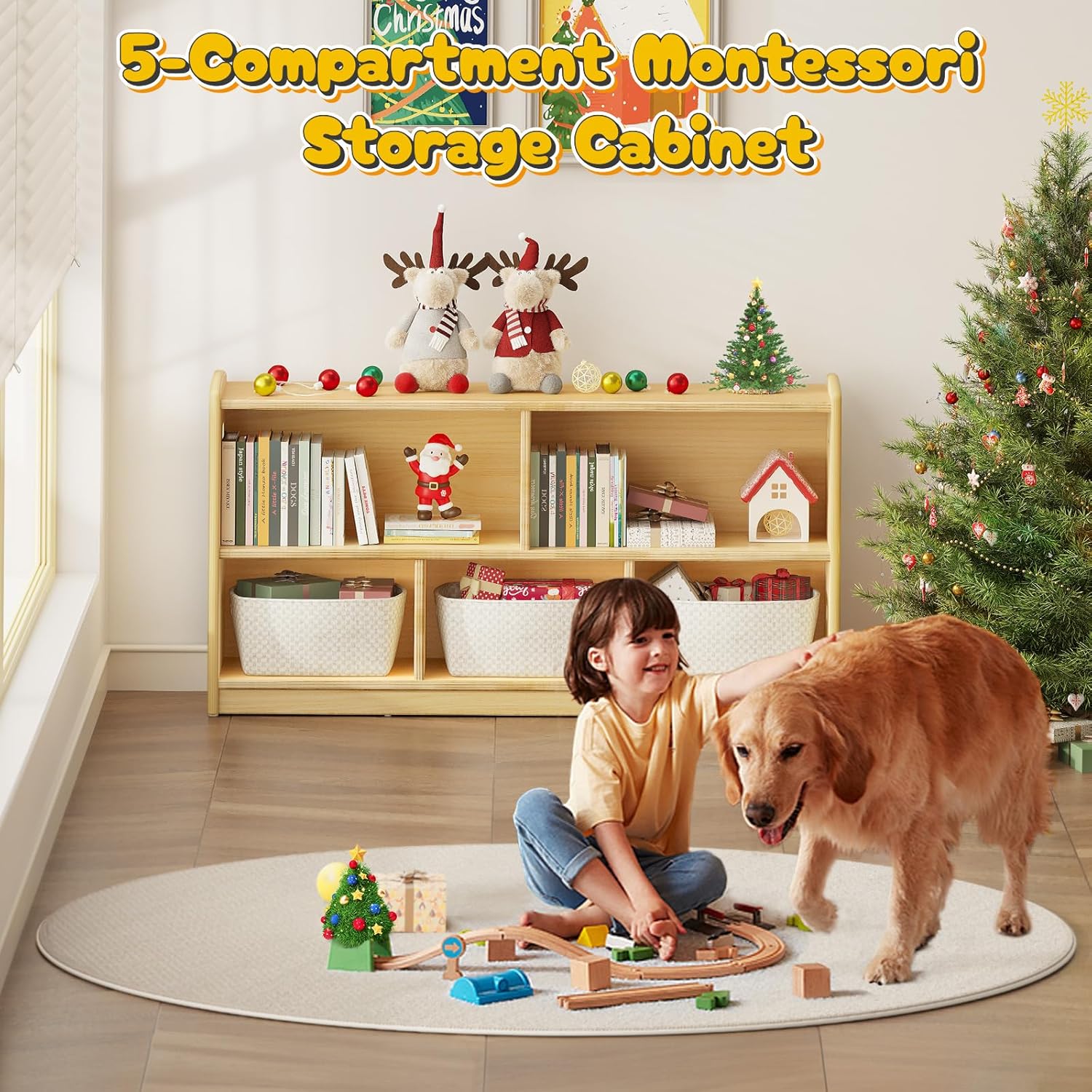 - Ample Storage Space: The wooded montessori shelf is designed with 5 storage compartments of 2-tiers, which can store children's books, toys, school supplies, and storage boxes. The top is very suitable for placing some decorations. Small book shelf can make a messy room tidy and orderly
