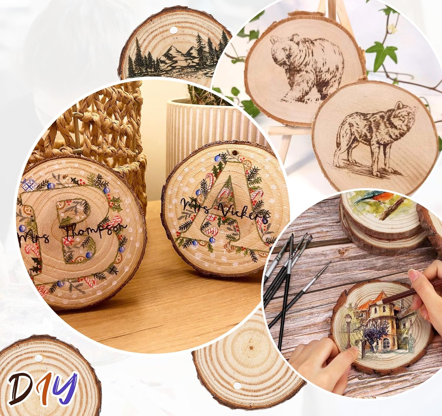 - [High-Quality Material] wood slicesCrafted from premium pine wood, our wood slices are meticulously sanded and polished to ensure a smooth surface that won't harm your hands. unfinished wood crafts are easy to write on, decorate, or carve, making them ideal for adults, children or beginners exploring their creative side.