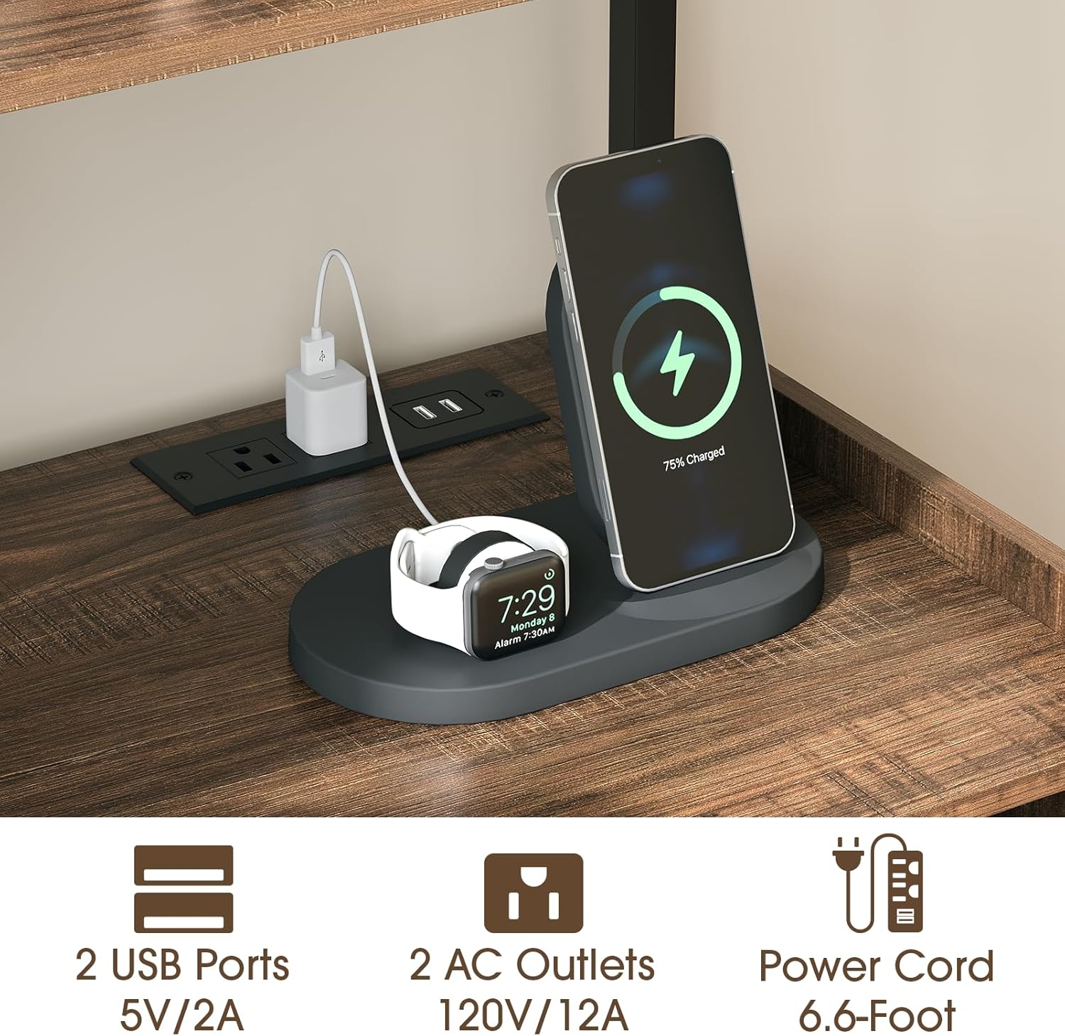 - Built-in Charging Station: Our walnut bookshelf with charging station comes with 2 AC outlets and 2 USB ports, which can charge 4 electronic appliances at the same time. The 6.6ft long power cord satisfies your charging needs