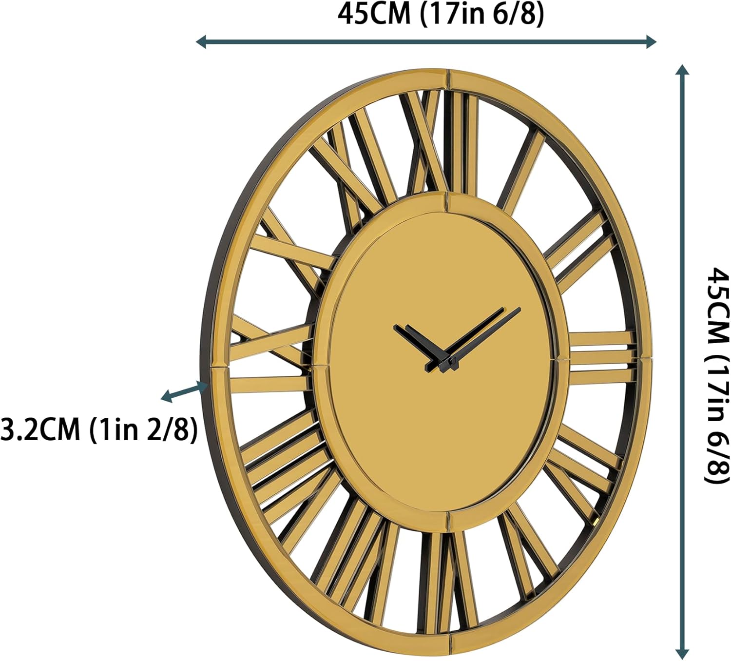 SHYFOY 18" Mirrored Wall Clock, Decorative Wall Clock with Roman Numerals, Living Room Wall Clocks, Kitchen Office Home Decor Battery Powered