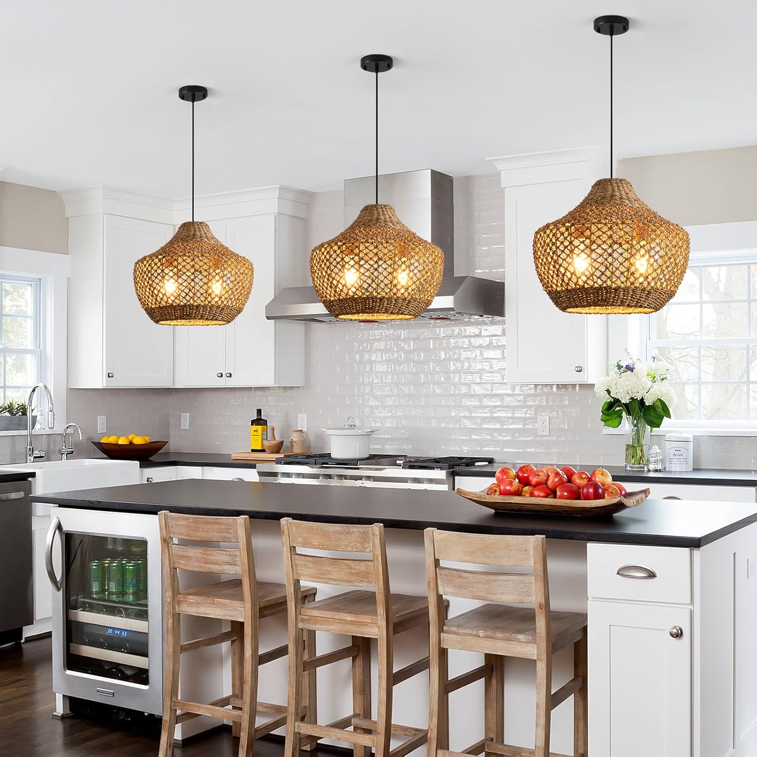 - Simple installation: This is a hand-woven rattan lamp; includes installation instructions and accessories required for installation; installation is very convenient; for safe and reliable installation; we recommend that you contact a professional electrician directly