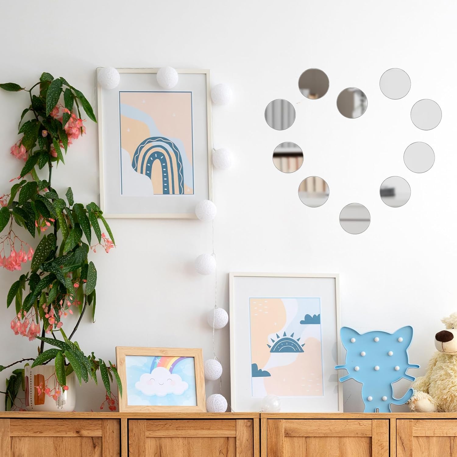 - MIRROR TILES FOR DIY CRAFTS: Circle mini mirrors are perfect for a wide range of creative projects, these round mirror tiles are ideal for DIY crafts, holiday decorations, or unique home decor. Use them to create a stylish wall mirror, table scatter, centerpiece, or incorporate them into a starburst mirror design for an extra touch of glamour in your space.