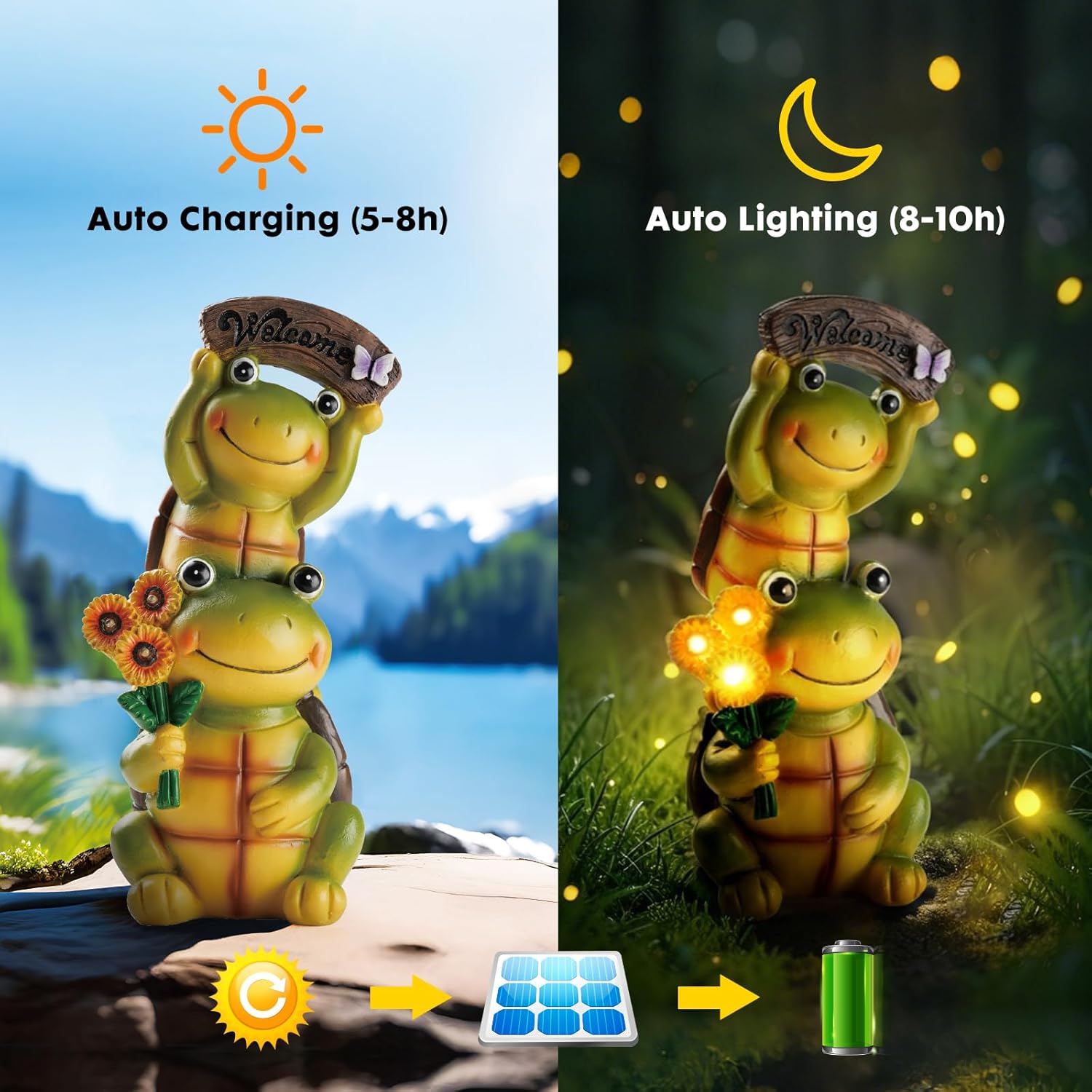 - Eco-friendly Solar Power: Equipped with an efficient solar panel, it absorbs sunlight during the day and automatically lights up at night. No batteries are needed, making it energy-saving and environmentally friendly.