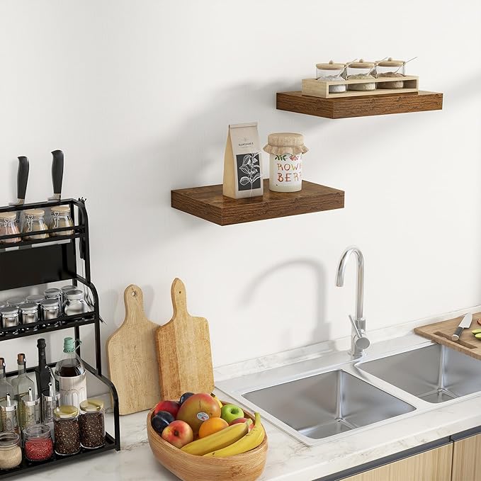 - VERSATILE WALL SHELVES: This 16 inches floating shelf is a versatile solution for any room in your home. Whether used in the living room, bedroom, office, or kitchen, it can be styled to suit various purposes, from displaying art to organizing everyday items. Perfect for enhancing any decor