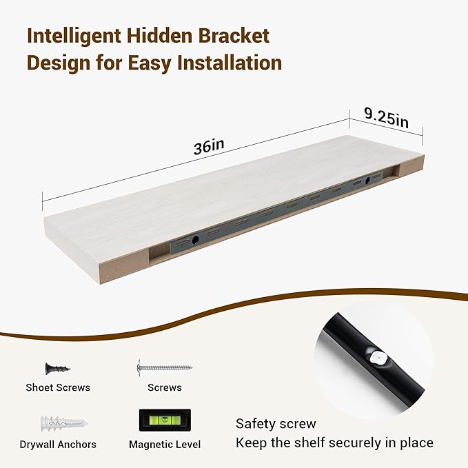 36 Inch Floating Shelves, 36"x9.25"x1.5" Inch Deep Floating Shelves for Wall, Wooden Shelves for Bathroom, Bedroom, Living Room, Cream White Oak