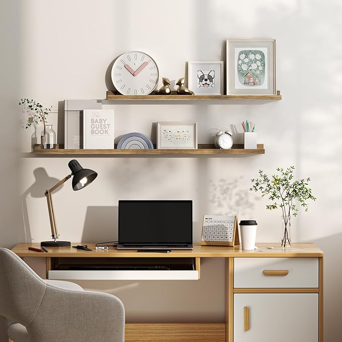 - Quick and Easy Installation: With pre-drilled holes, necessary hardware, and easy-to-follow instructions, our picture ledge shelves are a breeze to install. Each set even comes with a mini level for perfect alignment. Put them up in minutes and start decorating right away!