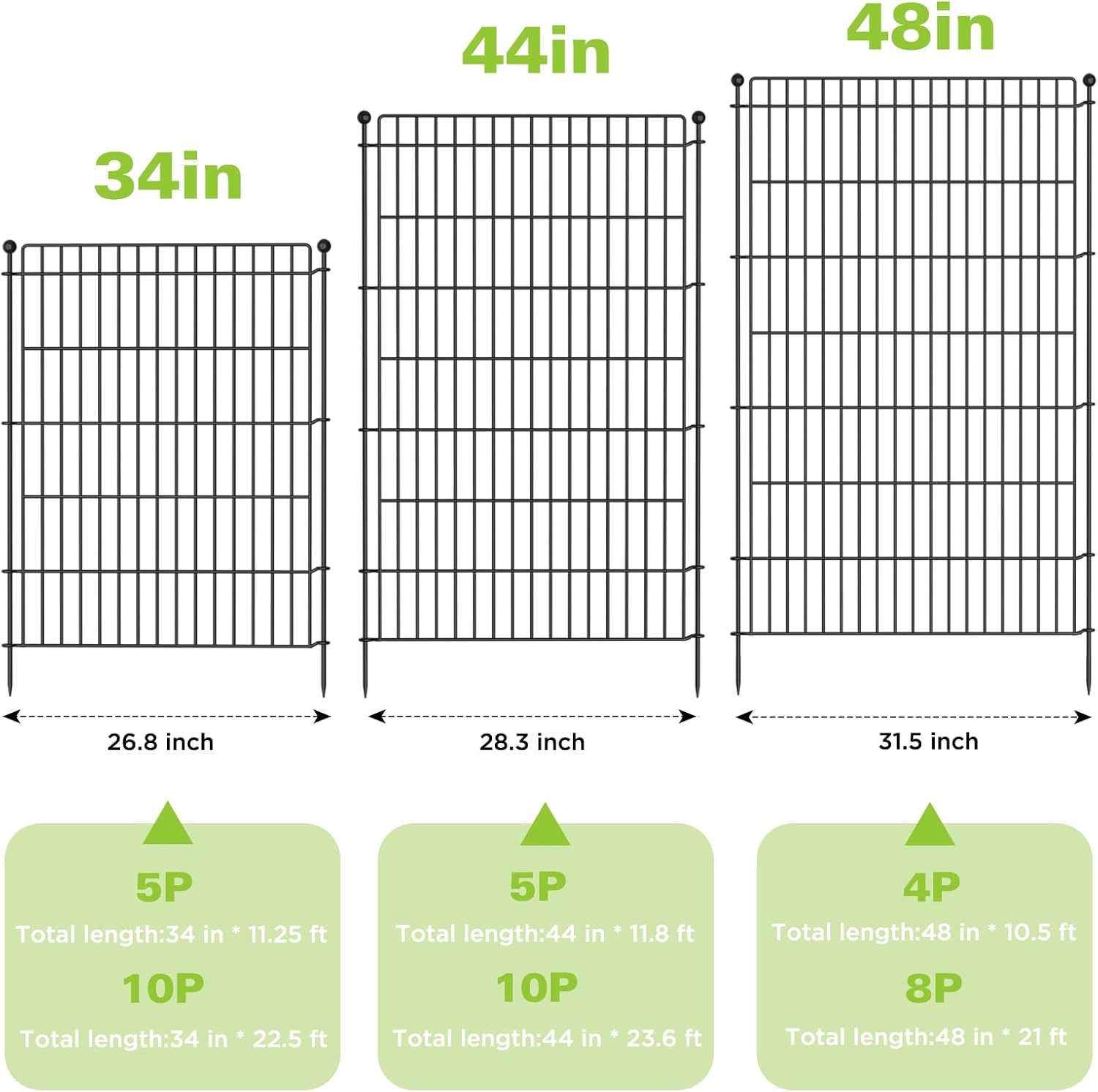 5 Panels No Dig Garden Fence Animal Barrier, 34in(H) × 11.25ft(L) Decorative Metal Outdoor Dog Fence, Rustproof Pet Fencing for Yard, Patio, Flower Bed -Temporary Fencing| Easy to Install