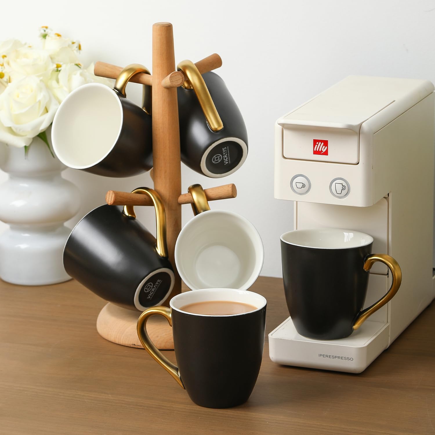 vicrays Coffee Mug Set, 11 Ounce, Set of 6, Ceramic Mug for Men, Women, Unique Glazed Mugs with Handle for Coffee, Tea, Milk, Cocoa, Cereal(Black with Golden)